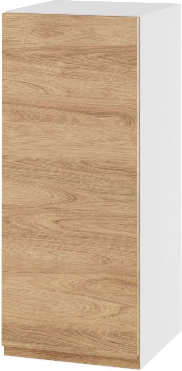 ALBA SZAFKA WISZĄCA LEWA G-30 HIKORA to model z kolekcji kuchni Komfort imitującej meble kuchenne z drewna naturalnego. Prezentowana szafka wisząca z pojedynczymi drzwiami uchylnymi lewostronnie, posiada innowacyjne okucia z systemem cichego domknięcia drzwi. Produkt wykonany z płyty laminowanej o matowym wykończeniu powierzchni, wykazuje właściwości odporne na uszkodzenia mechaniczne – takie jak zarysowania, przebarwienia i pęknięcia. Ciepły odcień, a także struktura usłojenia zaprezentowana na froncie szafki wiszącej – gwarantuje naturalny i przytulny efekt.