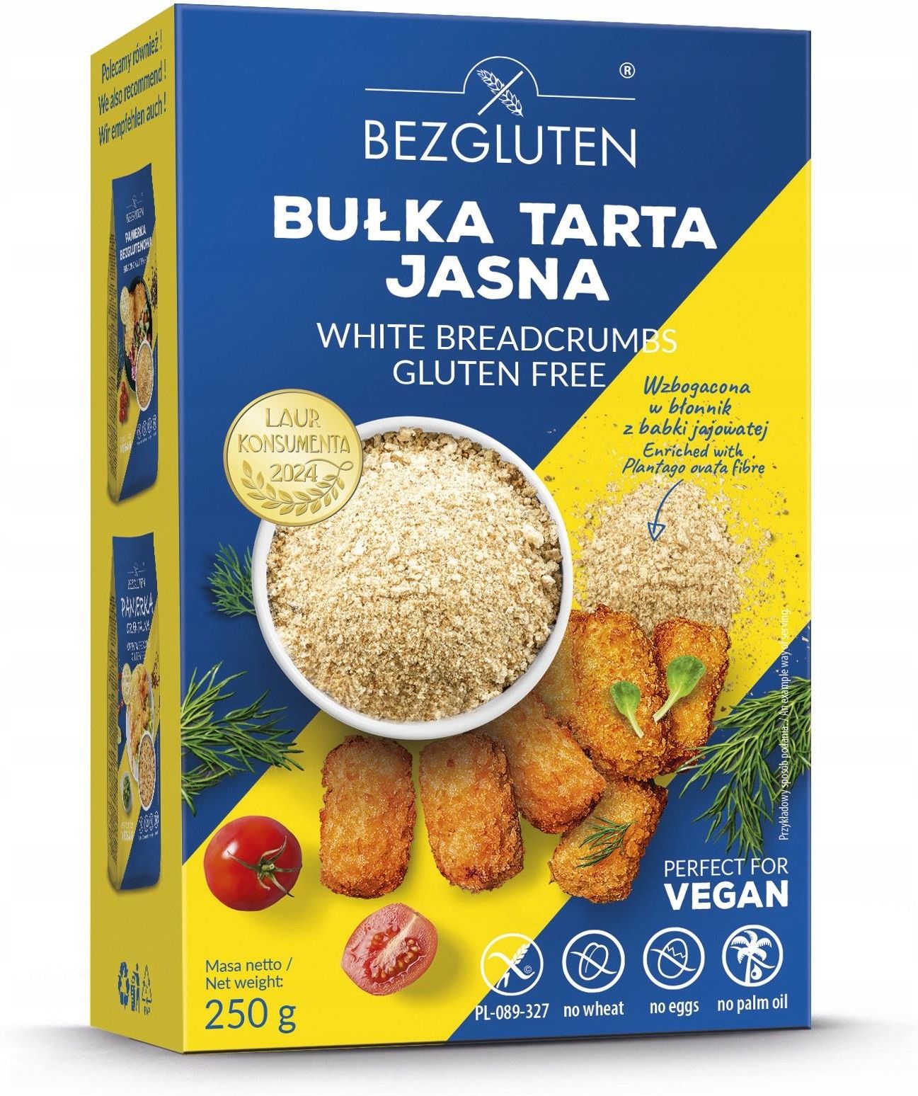 Bezglutenowa bułka tarta jasna 250g Bezgluten- do panierowania i wypieków Bułka tarta jasna marki Bezgluten to praktyczny i uniwersalny produkt bezglutenowy, odpowiedni także dla wegan. Doskonale sprawdza się w codziennej kuchni – do panierowania, zapiekania, zagęszczania zup, sosów i …