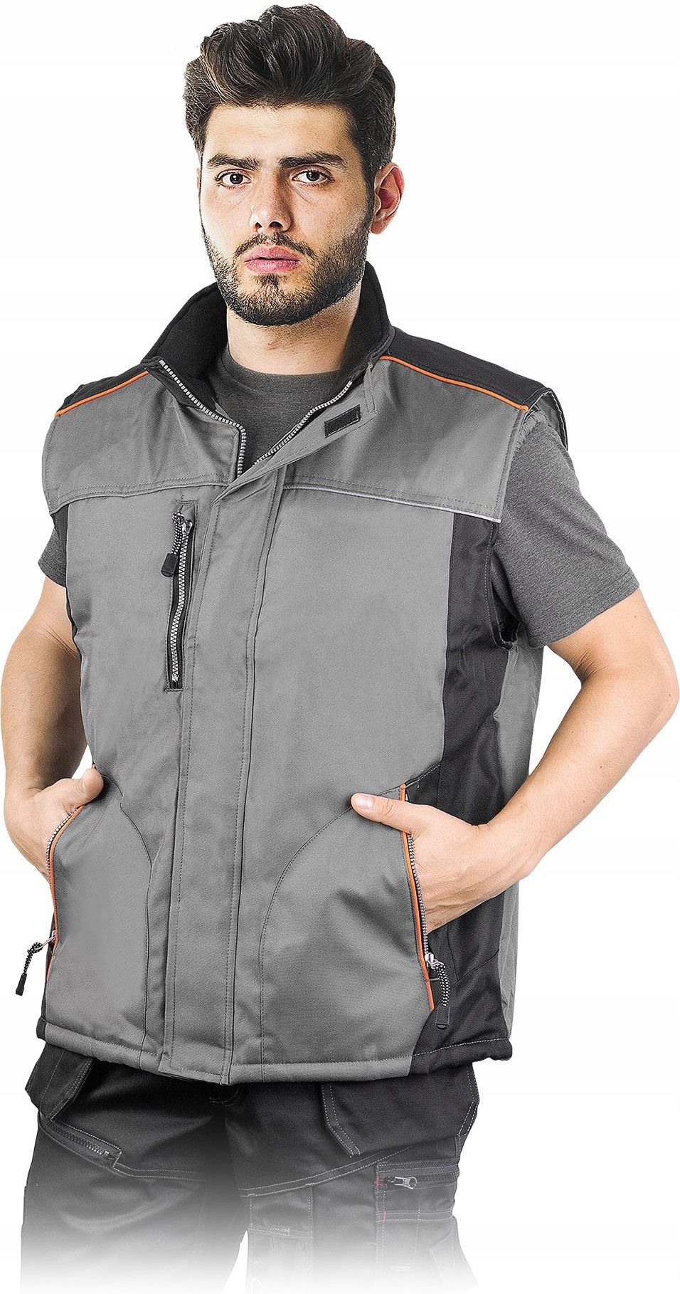 SHERIFF. Bezrękawnik ocieplany polarem: powłoka 100% poliester OXFORD o gramaturze 210 g/m², wyściółka 100% poliester o gramaturze 180 g/m², podszewka 100% poliester o gramaturze 160 g/m², powłoka powlekana poliuretanem odporna na wodę, zapinany na zamek błyskawiczny z dodatkową zakładką na rzepy, kołnierz ze stójką ocieplany polarem, dwie kieszenie po zewnętrznej stronie oraz jedna na klatce piersiowej zapinane na suwak, zapewnia doskonałą ochronę przed chłodem. Produkt polecany dla branż: - mechanicy i operatorzy maszyn i urządzeń, - prace budowlane (montażowo-instalacyjne), - prace magazynowe (transport i przeładunek), - rolnictwo i ogrodnictwo. Marka: REIS. Kolor: szaro-czarny. Rozmiary: M-3XL - tabela rozmiarów w grafice.