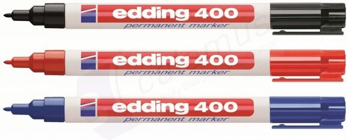 Pisak edding 400 permanent marker refillable do tworzenia napisów m.in. na folii, tworzywach, szkle, metalu itp kolor czarny końcówka okrągła grubość linii 1mm szybkoschnący tusz napisy odporne na ścieranie tworzą trwałą i nie rozmazującą się warstwę wodoodporny możliwość ponownego napełnienia tuszem