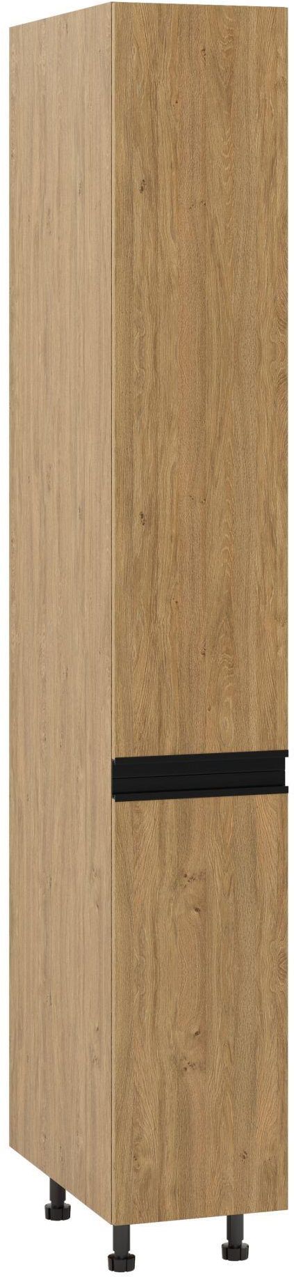 BARI PLUS SZAFKA DOLNA CARGO DC-30 DĄB KAMIENNY to jednodrzwiowy słupek do kuchni przeznaczony do aranżacji nowoczesnych, loft, industrialnych oraz eklektycznych. Prezentowany model z kolekcji kuchni Komfort posiada wygodne i minimalistyczne uchwyty aluminiowe w postaci poziomych i czarnych listew. Zastosowane w szafce dolnej do kuchni fronty laminowane zapewniają naturalnych wygląd charakterystyczny dla dębowych mebli kuchennych. Naturalne drewno, tak samo jak jego wierna imitacja, pozwoli wnieść do wnętrza przytulność, nastrój i wizualne ocieplenie.