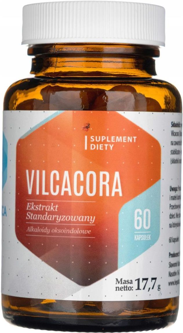 Hepatica Vilcacora Alkaloidy oksoindolowe 200mg 60 kaps Hepatica Vilcacora Alkaloidy oksoindolowe 200mg 60 kaps to suplement diety, który wspiera zdrowie w naturalny sposób. Vilcacora, znana również jako koci pazur, to roślina o bogatej historii zastosowania w medycynie naturalnej, pochodząca z Ameryki Środkowej i Południowej. Dzięki swoim potencjalnym właściwościom zdrowotnym, suplementy diety zawierające wyciąg z tej rośliny mogą być wartościowym elementem codziennej diety dla osób pragnących dbać o swoje zdrowie i samopoczucie. Pojemność i forma podawania Produkt występuje w formie kapsułek, co czyni go łatwym do przyjmowania. Opakowanie zawiera 60 kapsułek, co zapewnia wygodne stosowanie przez dłuższy czas. Zalecane dawkowanie to jedna kapsułka po śniadaniu oraz druga w ciągu dnia, co ułatwia wprowadzenie suplementu do codziennej rutyny. Skład W każdej kapsułce znajduje się 220 mg wyciągu z kory czepoty puszystej (Uncaria tomentosa DC.), standaryzowanego na zawartość min. 3% alkaloidów. Alkaloidy te mogą wspierać funkcje obronne organizmu poprzez stymulację białych krwinek (leukocytów), co jest istotne dla naszej odporności. Oprócz tego, kapsułka zawiera stabilizator – hydroksypropylometyloceluloza, który jest używany jako składnik otoczki kapsułki. Działanie suplementu Preparat ten może przynieść wiele korzyści zdrowotnych, w tym: wspieranie układu odpornościowego, co jest kluczowe dla ochrony organizmu przed chorobami, działanie przeciwzapalne, które może być korzystne w łagodzeniu dolegliwości związanych z układem ruchu, możliwość wsparcia w radzeniu sobie z problemami emocjonalnymi, stymulacja białych krwinek, co wspomaga naturalne mechanizmy obronne organizmu, działanie przeciwutleniające, ograniczające wpływ wolnych rodników na komórki. Te właściwości sprawiają, że suplement jest interesującym wyborem dla osób, które chcą wspierać swoje zdrowie w naturalny sposób. Wskazania do stosowania Preparat jest zalecany dla osób, które pragną poprawić stan swojego zdrowia i wspierać organizm w walce z różnymi dolegliwościami. Może być przydatny w przypadku: osłabionej odporności i narażenia na infekcje, wysokiego poziomu stresu lub innych problemów emocjonalnych, problemów z układem pokarmowym lub reumatyzmem, dążeń do profilaktyki chorób cywilizacyjnych. Dawkowanie Zalecana dawka to jedna kapsułka po śniadaniu oraz druga w ciągu dnia. Regularne stosowanie suplementu może przyczynić się do lepszego samopoczucia. Przeciwwskazania i bezpieczeństwo Preparat jest naturalny i wolny od dodatków, co czyni go bezpiecznym dla większości osób. Odpowiedni jest również dla wegan i wegetarian. Zawsze warto skonsultować się z lekarzem przed rozpoczęciem suplementacji, szczególnie w przypadku ciąży, karmienia piersią lub występowania alergii. Informacje dodatkowe Suplement diety wyróżnia się czystością składu i brakiem dodatków, co czyni go idealnym rozwiązaniem dla osób poszukujących naturalnych produktów. Produkt ten jest przeznaczony do codziennego użytku i może wspierać zdrowy styl życia.