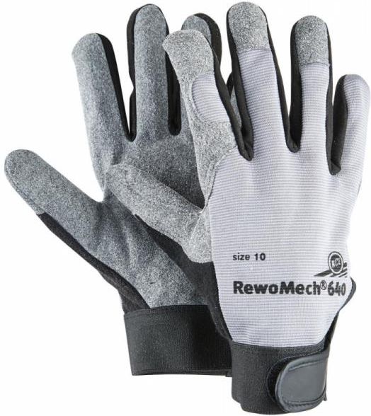 Rękawice RewoMech® 640 Norma: EN 388:2016 Właściwości: – Wysoka czułość – Nie zawierają chromianu VI Budowa: – Wzmocnione kciuki i powłoka odporna na ścieranie – Nie twardnieją, zapięcia na rzepy na nadgarstkach Obszary zastosowania : Prace montażowe, prace magazynowe, mechanika precyzyjna …