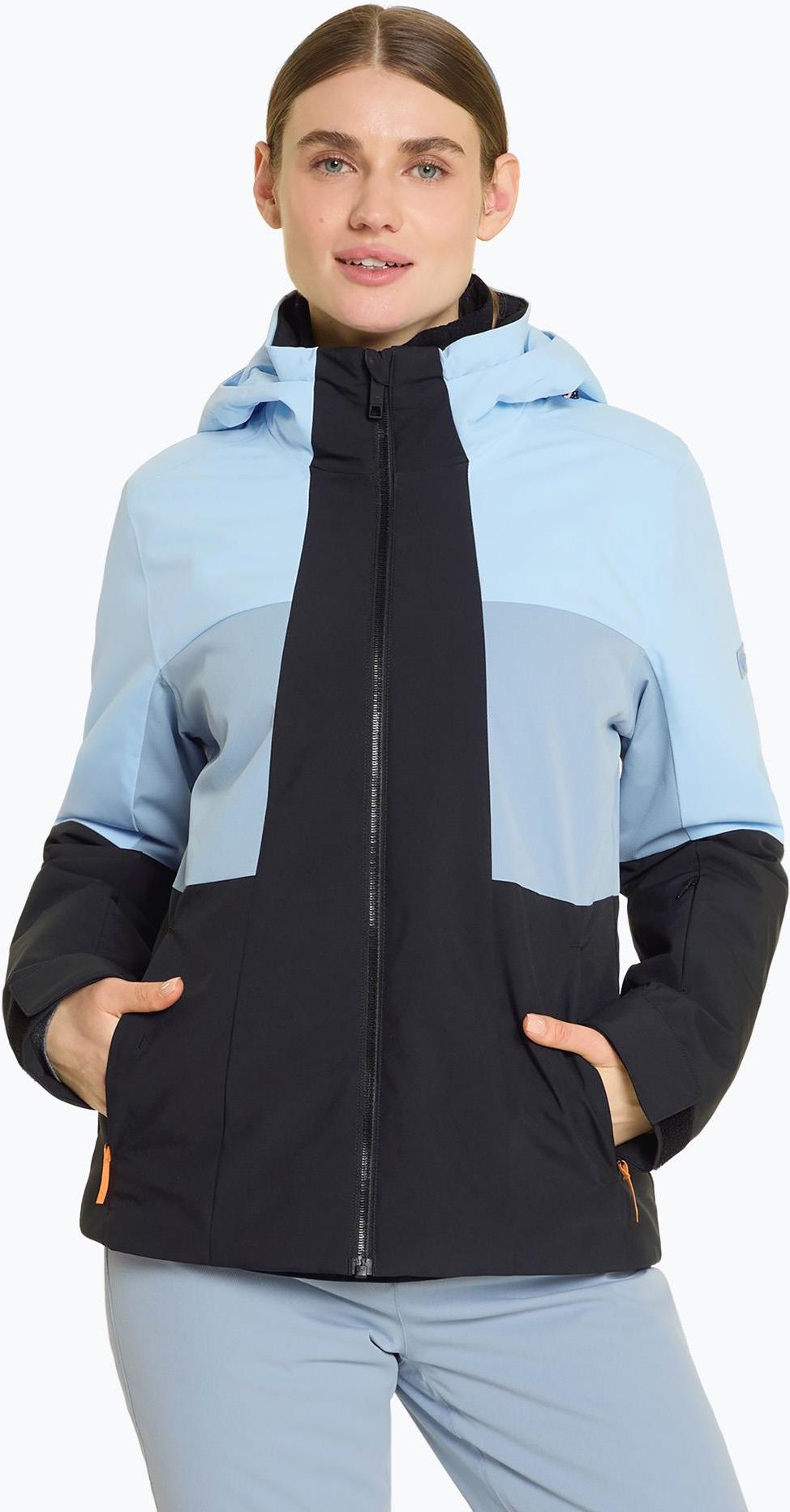 Kurtka narciarska damska Ziener Tasilla - black to idealny wybór dla każdej narciarki, poszukującej połączenia stylu i funkcjonalności na stoku. Dzięki elastycznej podszewce, kurtka zapewnia optymalną swobodę ruchów, co jest niezwykle ważne podczas uprawiania sportów zimowych. Kurtka narciarska damska Ziener Tasilla - black wykorzystuje zaawansowaną technologię Aquashield®, która zapewnia wodoodporność na poziomie 10,000 mm słupa wody oraz oddychalność 10,000 g/m²/24h. Membrana ta w połączeniu z klejonymi szwami skutecznie chroni przed wilgocią, dodatkowo zapewniając optymalne odprowadzanie wilgoci na zewnątrz, co zwiększa komfort użytkowania. Dodatkowo kurtka wyposażona została w izolację o gramaturze 100 g/m², co zapewnia doskonałe właściwości termiczne, utrzymując ciepło nawet w najzimniejsze dni. Kurtka narciarska damska Ziener Tasilla - black posiada kieszeń na skipass, dzięki czemu dostęp do karnetu jest szybki i łatwy. Wyposażona została także w dwie boczne kieszenie zapinane na zamek, wewnętrzną kieszeń na gogle oraz kieszeń na telefon. Elastyczne mankiety na rękawach oraz regulowany kaptur zapewniają dodatkową ochronę przed zimnem, a dzięki fartuchowi śnieżnemu biały puch nie dostanie się do środka. Elementy odblaskowe zwiększają widoczność w warunkach słabego oświetlenia. Kurtka Ziener Tasilla - black - najważniejsze cechy:Wyposażona w membranę Aquashield®, która zapewnia wodoodporność na poziomie 10,000 mm słupa wody oraz oddychalność 10,000 g/m²/24h;Izolacja o gramaturze 100 g/m2;Klejone szwy;Kieszeń na skipass;Dwie boczne kieszenie zapinane na zamek;Wewnętrzna kieszeń na gogle;Kieszeń na telefon;Elastyczna podszewka zapewnia swobodę ruchów;Elastyczne mankiety;Regulowany, zintegrowany kaptur;Fartuch śnieżny;Elementy odblaskowe.