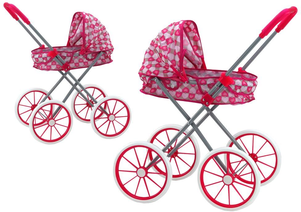 Lean Toys Wózek Dla Lalek Duże Koła Składany Różowy Serduszka Jordanów