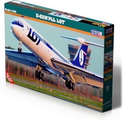 Iljuszyn Ił-62 był czterosilnikowym odrzutowym samolotem pasażerskim dalekiego zasięgu o konstrukcji w pełni metalowej, półskorupowej w układzie dolnopłata produkcji radzieckiej. Napęd zapewniały cztery silniki NK-8 lub D-30KU. Oblot prototypu miał miejsce w 1963 roku, a produkcja seryjna trwała w ZSRR i Rosji od 1963 aż do 1995 roku, kończąc się wytworzeniem blisko 300 egzemplarzy tej maszyny. Ił-62 powstał jako samolot mający zastąpić starzejące się Ił-18 oraz przestarzałe maszyny Tu-114. W ogólnym założeniu Ił-62 był zbliżony do brytyjskiego Vickersa VC-10, jednak obie maszyny różniły się na wielu płaszczyznach. Ił-62 cechował się przede wszystkim sporym zasięgiem (ok.8000 km), wysoką pojemnością kabiny pasażerskiej (samolot w wersji Ił-62M mógł przewieźć do 195 pasażerów!), zapewniającą przyzwoity komfort podróżowania, ale także bardzo ciche wnętrze oraz łatwość pilotażu. Największymi minusami konstrukcji okazało się zastosowanie czterech silników umiejscowionych w tylnej części maszyny oraz stosowanie silników posiadających liczne błędy konstrukcyjne, co doprowadziło do kilkunastu katastrof samolotów Ił-62, w tym dwóch w barwach PLL-LOT. Pomimo wad, samolot był eksportowany do Polski czy NRD, ale znalazł też odbiorców zachodnich: Francję czy Holandię, których linie lotnicze okresowe dzierżawiły samoloty Ił-62.Skala: 1:144EAN: 5903852070328