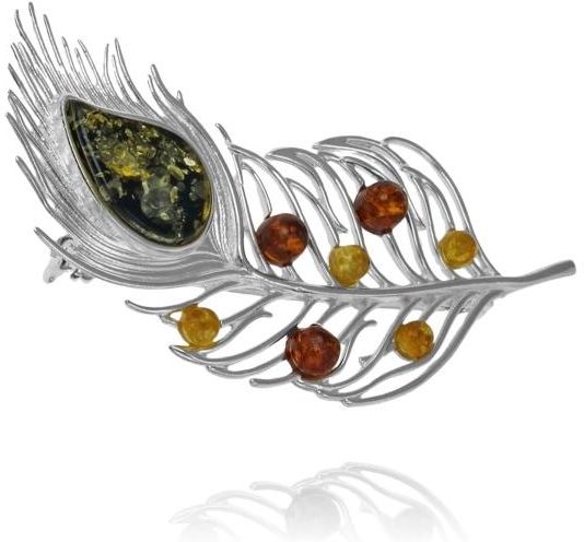 Norbisrebro Piękna Srebrna Ażurowa Brosza Broszka Pióro Z Bursztynami Jordanów