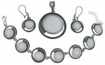 Piękny Srebrny Oksydowany Komplet z Białym Kwarcem !!! Wspaniała Jakość i Atrakcyjność Wyrobu w Stosunku do Ceny. Próba 925 Waga - Bransoletka 19,8 g. Wisiorek 10,2 g. Kolczyki 5,9 g. Długość - Bransoletka 18 cm. + ewentualne przedłużenie łańcuszkowe do 22 cm.Wisiorek - 5,3 cm. z zawieszką Kolczyki …