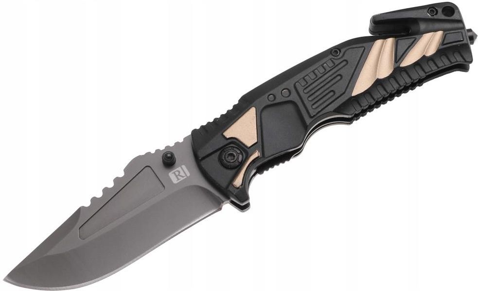 Nóż składany Głownia typu Drop point utwardza sztych dzięki czemu nóż bardzo dobrze tnie. Idealny nóż myśliwski, ale również roboczy Cechy produktu: Nóż wykonany z wysokiej jakości stali Ozdobny uchwyt z nakładkami z tworzywa Dodatkowe ostrze oraz zbijak do szyb w dolnej części ostrza Otwór na linkę Rękojeść typu Framelock Bardzo ostry Wygodnie leży w dłoni Scyzoryk składany Bardzo solidne wykonanie Długość ostrza: 8,5 cm Długość noża: 21 cm Długość noża złożonego: 12,5 cm