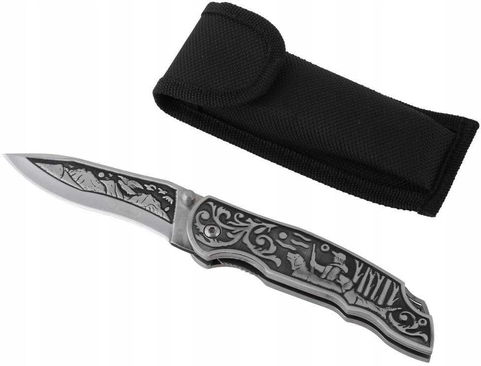 Nóż składany Głownia typu Clip point charakteryzuje się dobrą przebijalnością oraz dobrze sprawdza się przy precyzyjnych zadaniach Cechy produktu: Nóż wykonany z wysokiej jakości stali Stalowy uchwyt Grawer po obu stronach uchwytu oraz ostrza Bardzo ostry Wygodnie leży w dłoni Rękojeść typu Frame lock Scyzoryk składany Bardzo solidne wykonanie Długość ostrza: 8,5 cm Długość noża: 20,5 cm Długość noża złożonego: 12 cm W zestawie materiałowy pokrowiec