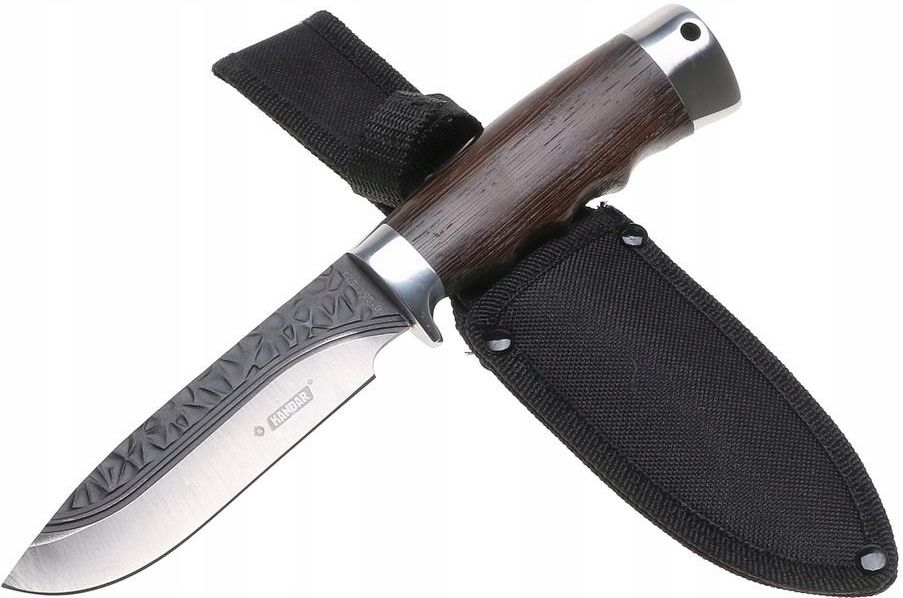 Nóż myśliwski Głownia typu Drop point utwardza sztych dzięki czemu nóż bardzo dobrze tnie. Idealny nóż myśliwski, ale również roboczy Cechy produktu: Nóż wykonany z wysokiej jakości grubej stali Bardzo ostry Wygodnie leży w dłoni Głownia typu Drop point Rękojeść typu hidden tang (ukryty trzpień) Uchwyt z tworzywa na wzór drewna Jelec chroni przed ześlizgnięciem się dłoni Bardzo solidne wykonanie Stalowa głowica z otworem na linkę Długość ostrza: 10,5 cm Długość noża: 23 cm W zestawie materiałowy pokrowiec