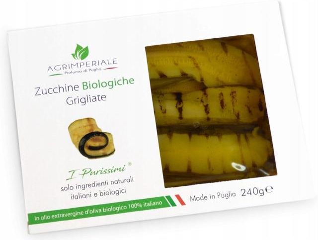 Produkty Agrimperiale pochodzą z certyfikowanych pól organicznych w krótkim łańcuchu dostaw, kilka kilometrów od zakładu przetwórczego i poddawane są kontroli wejściowej w celu sprawdzenia, czy nie zawierają substancji lub pozostałości niedozwolonych metodą ekologiczną. Wyselekcjonowane z najlepszych pól Apulii, marynowane we włoskim i organicznym soku z cytryny i pomarańczy, warzywa te mają naturalny smak, nie zmącony przyprawami ani innymi składnikami. Grillowane warzywa nie są po prostu nacinane, ale pieczone w specjalnym piekarniku. Proces ten trwa około 30 minut i powoduje utratę masy o prawie 40%, co nadaje warzywom bardzo przyjemny smak. Jedz codziennie roślinnie, zdrowo i włosko dzięki naszym doskonałym produktom organicznym! Agrimperiale działa na rzecz zapewnienia bezpieczeństwa żywności na bardzo wysokim poziomie, dzięki zaawansowanym technologicznie systemom i ścisłej kontroli jakości, od pola po zapakowanie produktu. Wszystkie produkty są w 100% włoskie, naturalne i organiczne. Składniki: Cukinia 62%*, oliwa z oliwek Extra Virgin* 37%, ocet winny*, sok z cytryny*, sok pomarańczowy*, sól. *z upraw ekologicznych