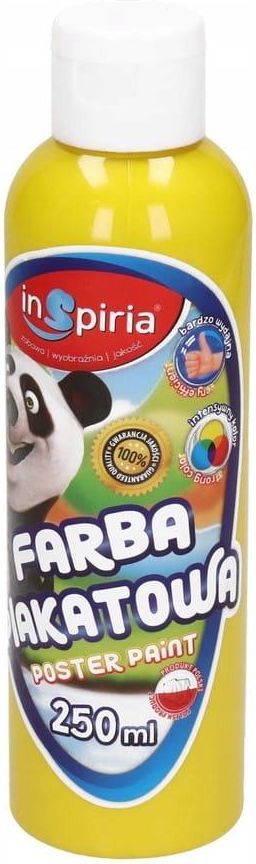 Farba plakatowa żółta 250ml InSpiria __________________________________________________________________ wygodne i szybkie w użyciu nie wymagają rozcieńczenia wodą łatwo się rozprowadzają i doskonale kryją malowaną powierzchnię do malowania na papierze, kartonie, drewnie żywe i intensywne kolory …