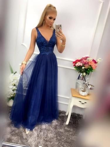 Zjawiskowa długa sukienka. Góra sukienki dobrze dopasowana, uszyta z przepięknej koronki z wszytymi miseczkami. Plecy w literkę V . Dół sukienki uszyty jest z podwójnej warstwy tiulu podszyty lekką podszewką. Sukienka zapinana jest na zamek na plecach. Kreacja idealnie sprawdzi się na wesela dla gościa lub druhny a także na inne ważne okazje. Sukienka szyta w rozmiarach 36 - 42 W razie braku poszukiwanego rozmiaru prosimy o kontakt Tabela wymiarów danego modelu sukienki (wymiary podane w centymetrach) rozmiar biust pas 36 76-84 62-66 38 84-92 66-72 40 90-98 74-78 42 98-106 76-82 Ponieważ sukienki szyte są na dwu szwalniach bardzo prosimy przed zakupem o kontakt telefoniczny lub mailowy z podaniem swoich wymiarów. W ten sposób dużo łatwiej i bezpieczniej będzie dobrać odpowiedni rozmiar lub odpowiednią sztukę ze względu na delikatne różnice w wymiarach. Lepiej dobrze ustalić niż wymieniać :)