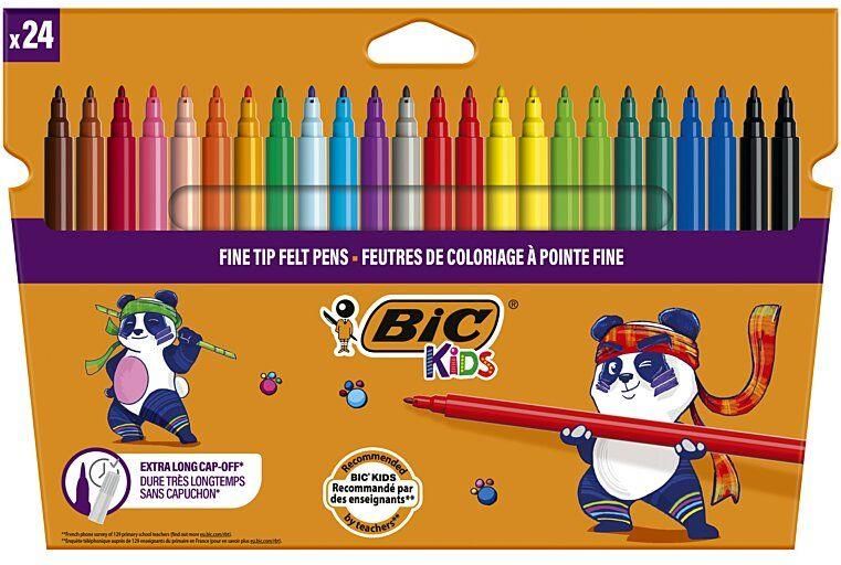 BIC FLAMASTRY MAZAKI PISAKI ZMYWALNE WODNE DLA DZIECI 24 kolory PRODUCENT OPIS PRODUKTU Kolorowe pisaki marki BIC doskonale nadają się do użytku w szkole.Nie wysychają, nawet jeżeli zostaną pozostawione na jakiś czas bez skuwki.Cienkie końcówki zostały stworzone z myślą o kreśleniu wyrazistych, czystych linii i misternych kolorowych detali.Wodny tusz całkowicie spiera się z większości tkanin.Pisaki BIC Kids Visa nie wysychają nawet pozostawione przez 3 miesiące bez skuwki (nie dotyczy to czarnego tuszu).Cienkie końcówki zostały stworzone z myślą o kreśleniu wyrazistych, czystych linii i misternych kolorowych detali.Wodny tusz całkowicie spiera się z większości tkanin.
