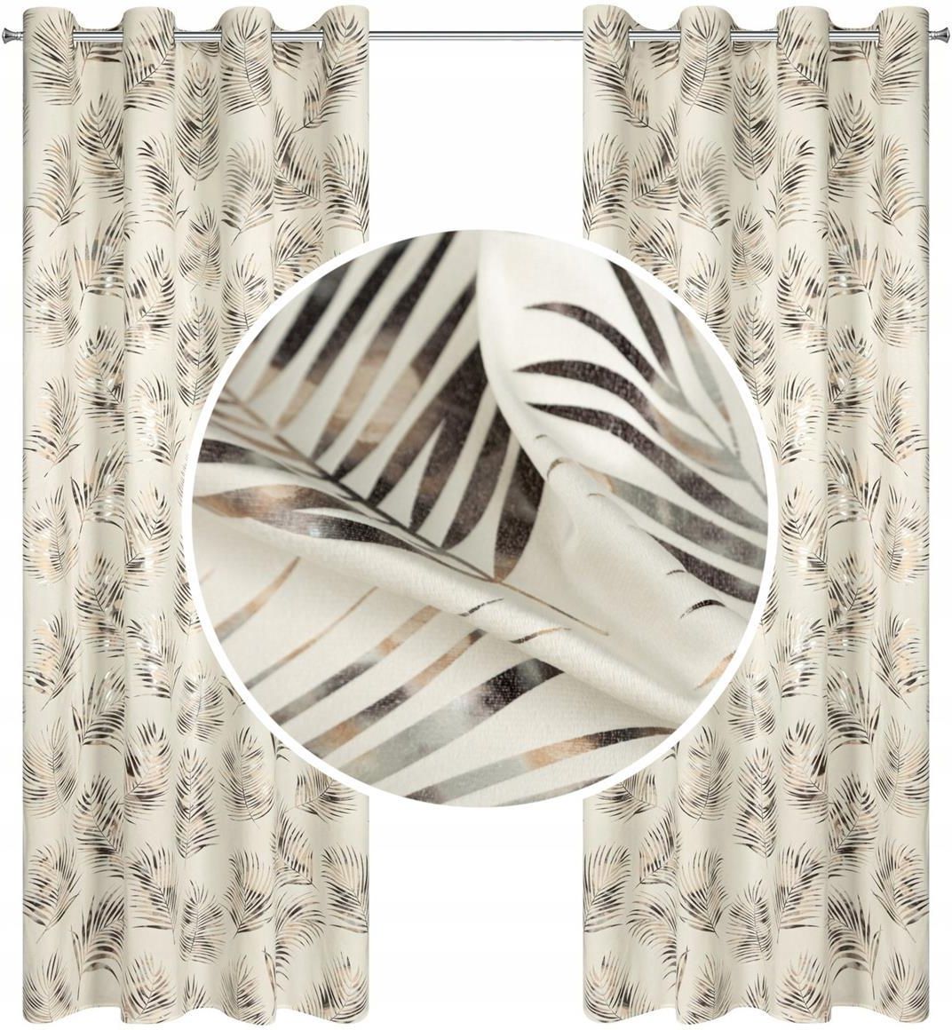 Eurofirany Zasłona Gotowa Na Przelotkach Gloria2 140X250 Welwetowa Kremowa Z Cieniowanym Błyszczącym Nadrukiem Liści Józefów nad Wisłą