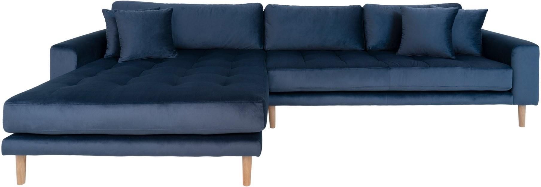 Lido narożnik - sofa narożnik, lewostrona, ciemnoniebieska, welur z czterema poduszkami z drewnianymi nogami, HN1005 Narożnik, sofa lewostrona, ciemnoniebieska, welur z czterema poduszkami z drewnianymi nogami, HN1005