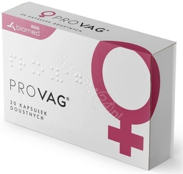 6,12 g (20 kapsułek po 306 mg) Instytut Biotechnologii Surowic i Szczepionek Biomed S.A. Al. Sosnowa 8 30-224 Kraków Laktoza (z mleka); substancja wypełniająca (mannitol); składnik kapsułki (żelatyna); mleko (pochodzenia krowiego); sacharoza; 1 miliard bakterii kwasu mlekowego w proporcji: 50% Lactobacillus gasseri 57C, 25% Lactobacillus fermentum 57A, 25% Lactobacillus plantarum 57B; substancja przeciwzbrylająca (sole magnezowe kwasów tłuszczowych), barwnik kapsułki (dwutlenek tytanu). 1 kapsułka zawiera: 1 miliard pałeczek: Lactobacillus gasseri 57C, Lactobacillus fermentum 57A i Lactobacillus plantarum 57B. Suplementacja diety w żywe pałeczki kwasu mlekowego. Suplement diety Provag w postaci kapsułek jest przeznaczony dla kobiet i dziewcząt do uzupełnienia diety w żywe bakterie kwasu mlekowego z rodzaju Lactobacillus i zachowania równowagi flory bakteryjnej układu moczowo-płciowego. Może być przyjmowany zwłaszcza w trakcie i po zakończeniu antybiotykoterapii ogólnej i miejscowej, przyjmowania leków przeciwrzęsistkowych i przeciwgrzybiczych. Pałeczki kwasu mlekowego w naturalny sposób przemieszczają się z dolnego odcinka przewodu pokarmowego i zasiedlają pochwę, przyczyniając się do utrzymania jej odpowiedniego pH. Produkt termolabilny jest preparatem wrażliwym na temperaturę i wymaga specjalnych warunków przechowywania. Przechowuj go zgodnie ze wskazówkami producenta zawartymi w ulotce lub na opakowaniu produktu. Provag należy przechowywać w lodówce, w temperaturze 2-8°C. Jeżeli preparat przechowywany jest poza lodówką w temperaturze do 25°C, należy go spożyć w ciągu 4 tygodni. Informujemy, że produkty termolabilne można zamawiać tylko za pośrednictwem kuriera Poltraf i DPD. Nie ma obecnie możliwości dostarczenia produktów lodówkowych do punktów odbioru Cool Point. Zawiera cukry i substancję słodzącą. Kobiety i dziewczęta : 1 kapsułka dziennie. Kapsułkę należy popić wodą. Preparat należy stosować co najmniej przez 20 dni. Nie należy przekraczać zalecanej dziennej porcji. Zrównoważony sposób żywienia i prawidłowy tryb życia jest ważny dla funkcjonowania organizmu człowieka. Suplement diety nie może być stosowany jako substytut (zamiennik) zróżnicowanej diety. Przechowywać w sposób niedostępny dla małych dzieci. W okresie ciąży i karmienia piersią stosowanie suplementu diety Provag należy skonsultować z lekarzem. Nie stosować w przypadku nadwrażliwości na którykolwiek z jego składników. Spożycie w nadmiernych ilościach może mieć efekt przeczyszczający.