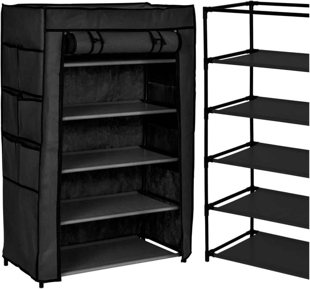 SZAFA TEKSTYLNA Z 6 PÓŁKAMI - MIRA Kolor: czarny Praktyczne i lekkie Lekkie szafy tekstylne to proste i ekonomiczne rozwiązanie problemu przechowywania odzieży. Szafy mają metalowy stelaż z łącznikami z tworzywa sztucznego, są proste i szybkie w montażu oraz dostępne w wielu modnych kolorach i …