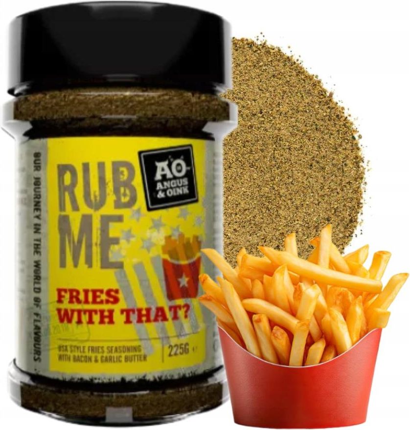 Angus & Oink Fries With That – idealna przyprawa do frytek Szukasz sposobu, by Twoje frytki smakowały jak te z najlepszych restauracji? Angus & Oink Fries With That to mieszanka przypraw stworzona specjalnie, aby nadać frytkom wyjątkowy, wyrazisty smak. Idealnie komponuje się zarówno z klasycznymi frytkami, jak i z batatami, chipsami, a nawet warzywami pieczonymi w piekarniku. Jej doskonale zbalansowana receptura łączy w sobie nuty cebuli, czosnku i aromatycznych ziół, tworząc prawdziwą eksplozję smaku. Dzięki tej przyprawie zwykłe frytki zyskują nowy wymiar – stają się chrupiące, aromatyczne i po prostu uzależniające! Możesz jej używać nie tylko do ziemniaków, ale także do mięs, burgerów czy nawet popcornu, aby nadać im wyjątkowego charakteru. Świetna do Frytek klasycznych i z batatów Pieczonych i smażonych ziemniaków Chipsów i popcornu Warzyw grillowanych i pieczonych Burgerów i kanapek Składniki Sól, cukier, cebula, czosnek, przyprawy, ekstrakt drożdżowy, olej rzepakowy, substancja przeciwzbrylająca (E551). Teraz możesz cieszyć się idealnie doprawionymi frytkami bez wychodzenia z domu!