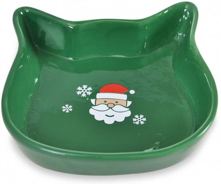 BARRY KING Miska ceramiczna dla kota Św. Mikołaj 13,6 x 13,6 x 3 cm - zielona Solidna i stabilna, dzięki ceramicznemu wykonaniu z świątecznym motywem. INFORMACJE O PRODUKCIE wykonana z ceramiki, w kształcie pyszczka kota, ma niskie ranty, z wizerunkiem Świętego Mikołaja, BARRY KING prezentuje …