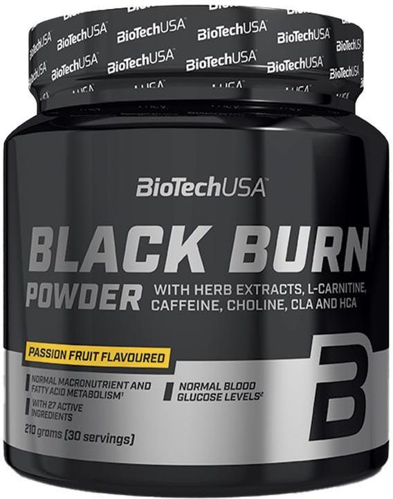 Biotech USA Black Burn 210g Suplement diety napój w proszku z ekstraktem roślinnym, L-karnityną, choliną, inozytolem, CLA, HCA, aminokwasami, witaminami i minerałami, a także 200 mg kofeiny w każdej porcji. CECHY PRODUKTU: Smakowy napój w proszku 26 składników aktywnych W każdej porcji 200 mg kofeiny Ekstrakt 9 ziół Źródło 2 rodzajów L-karnityny: winianu L–karnityny oraz acetylo-L-karnityny Zawiera cholinę, inulinę, HCA (z ekstraktu owocu Garcinia cambogia) oraz CLA (sprzężony kwas linolowy) Zawiera L-tyrozynę Zawiera 4 rodzaje pierwiastków śladowych: żelazo, jod, cynk, chrom Zawiera 5 rodzajów witamin: witamina B kompleks (witaminy B3, B5, B6, B9 i B12) 30 dawek dziennych METABOLIZM TŁUSZCZÓW: Czy figurę kształtujesz na podstawie planu treningowego, ruchu oraz stosując świadomie dietę i suplementy diety? Idziesz w dobrym kierunku, ale wynik nie jest zadowalający? Jeśli dążysz do ideału, przejdź na wyższy poziom! Wybierz najlepiej dopasowaną do swoich celów formułę termogeniczną! BLACK BURN - EKSTREMALNA KOMPOZYCJA, W KTÓRĄ WŁOŻYLIŚMY WSZYSTKO! TY TEŻ DAJ Z SIEBIE WSZYSTKO ABY ZYSKAĆ BARDZIEJ SPEKTAKULARNĄ I WYRAŹNĄ FORMĘ! Zrób wszystko aby osiągnąć optymalny metabolizm tłuszczów! → Spośród składników aktywnych napoju w proszku Black Burn do prawidłowego metabolizmu kwasów tłuszczowych przyczynia się cynk. Natomiast w metabolizmie tłuszczów udział bierze cholina. Energetyzuj! → Spośród witamin znajdujących się w produkcie w prawidłowym metabolizmie energetycznym udział biorą niacyna, kwas pantotenowy, witaminy B6 i B12, a także przyczyniają się do zmniejszenia poziomu zmęczenia oraz wyczerpania. Stymulacja na każdym poziomie! → Zawartość żelaza, jodu i cynku napoju w proszku Black Burn przyczynia się do utrzymania prawidłowych funkcji umysłowych. Co więcej, jod przyczynia się również do prawidłowego funkcjonowania układu nerwowego. Znajdujący się w produkcie kwas foliowy (witamina B9) podtrzymuje prawidłowe funkcje psychiczne. Zoptymalizuj apetyt! → Zawartość chromu w produkcie sprawia, że poziom cukru we krwi utrzymuje się na prawidłowym poziomie. Nic zbędnego - tylko sedno wymierzone w gramach! Komu polecany jest napój w proszku Black Burn? Tobie, jeżeli dodatkowe kilogramy lubisz na drążku, a nie na sobie Jeżeli poszukujesz produktów termogenicznych. Jeżeli szukasz smacznego napoju Gdy od wyznaczonego celu dzielą Cię już ostatnie centymetry Co zawiera jedna porcja napoju w proszku Black Burn? Oprócz stanowiących podstawę napoju w proszku Black Burn kompleksu witamin i minerałów znajdują się w nim również takie popularne składniki, jak L-karnityna, L-tyrozyna, CLA, HCA i inozytol. Wśród zróżnicowanych składników aktywnych produktu znajdziemy 9 ekstraktów roślinnych, np. z korzenia Coleus forskohlii, liści zielonej herbaty oraz wyciągi z zielonej kawy i guarany. Ekstrakty z trzech ostatnich roślin działają również jako naturalne źródło kofeiny, ale produkt został też wzbogacony o bezwodną kofeinę, dzięki której z większym impetem będziesz mógł oddać się treningom. Jedną z zalet smakowego napoju w proszku Black Burn jest rozpuszczalny w wodzie błonnik inulinowy. Przyglądnijmy się liczbom! 1 porcja (7 g): Roślinne składniki aktywne: 400 mg ekstrakt z ziaren kakaowca w tym 160 mg teobrominy 210 mg ekstrakt z ziaren zielonej kawy w tym 105 mg kwasu chlorogenowego 150 mg ekstrakt z liści zielonej herbaty w tym polifenole 57 mg 200 mg ekstrakt z ziaren guarany 90 mg ekstraktu z korzenia Coleus forskohlii w tym 12 mg forskoliny 73 mg ekstraktu z korzenia mniszka lekarskiego 45 mg ekstraktu z korzenia Polygonum cuspidatum w tym 43 mg resweratrolu 150 mg ekstraktu z owoców Garcinia cambogia W tym 90 mg HCA 94 mg kwercetyny Witaminy & minerały: 3,9 mg kwasu pantotenowego 3,2 mg niacyny 0,79 mg witaminy B6 138 µg kwasu foliowego 1,6 µg witaminy B12 10 mg żelaza 4,2 mg cynku 53,3 µg jodu 19 µg chromu Pozostałe składniki czynne: 1020 mg L-karnityny (z winianu L-karnitiny i acetylo-L-karnityny) 252 mg cytrynianu choliny w tym 87 mg choliny 300 mg CLA 1333 mg błonnika inuliny 200 mg kofeiny (z 4 źródeł) 300 mg inozytolu 500 mg L-tyrozyny Jak stosować napój w proszku Black Burn? Zalecane stosowanie: Spożywać 1 porcję (7 g = dwie płaskie miarki = 2 łyżeczki) przed posiłkiem, rozpuszczoną w 300 ml wody przy użyciu szejkera. Nie stosować przed spaniem. Nie przekraczać zalecanej dawki do spożycia w ciągu doby! Uwaga: Produkt należy przechowywać z dala od dzieci! Suplement diety nie zastępuje zrównoważonej, urozmaiconej diety i zdrowego trybu życia! Zawiera kofeinę (200 mg / porcja, 66,7 mg / 100 ml w gotowym produkcie do spożycia). Nie zaleca się spożycia przez dzieci do lat 18, kobiety ciężarne i karmiące piersią, osoby z chorobami serca, z wysokim ciśnieniem, nadwrażliwością na kofeinę oraz w przypadku zażywania leków! Opakowanie: 210 g (30 dawek dziennych) Składniki: inulina, L-winian L-karnityny 17,1%, aromaty, L-tyrozyna, CLA w proszku 7,1% [glicerydy (bogate w CLA), syrop kukurydziany, kazeinian sodu (zawiera mleko), substancja przeciwzbrylająca (dwutlenek krzemu), stabilizator (difosforany)], ekstrakt z ziaren kakaowca właściwego (Theobroma cacao), kwas (kwas cytrynowy), acetyl-L-karnityna 4,3%, inozytol 4,3%, cytrynian choliny 3,7%, ekstrakt z ziaren zielonej kawy (Coffea arabica), preparat ekstraktu z nasion guarany (Paullinia cupana) (ekstrakt z nasion guarany, kofeina), bezwodna kofeina 2,1%, ekstrakt z owoców tamaryndowca malabarskiego (Garcinia cambogia), ekstrakt z liści zielonej herbaty (Camellia sinensis), ekstrakt z korzenia pokrzywy indyjskiej (Coleus forskohlii), kwercetyna [z ekstraktu z pąków kwiatowych perełkowca japońskiego (Sophora japonica)], substancja słodząca (sukraloza), preparat ekstraktu z korzenia mniszka lekarskiego (Taraxacum officinale) (ekst