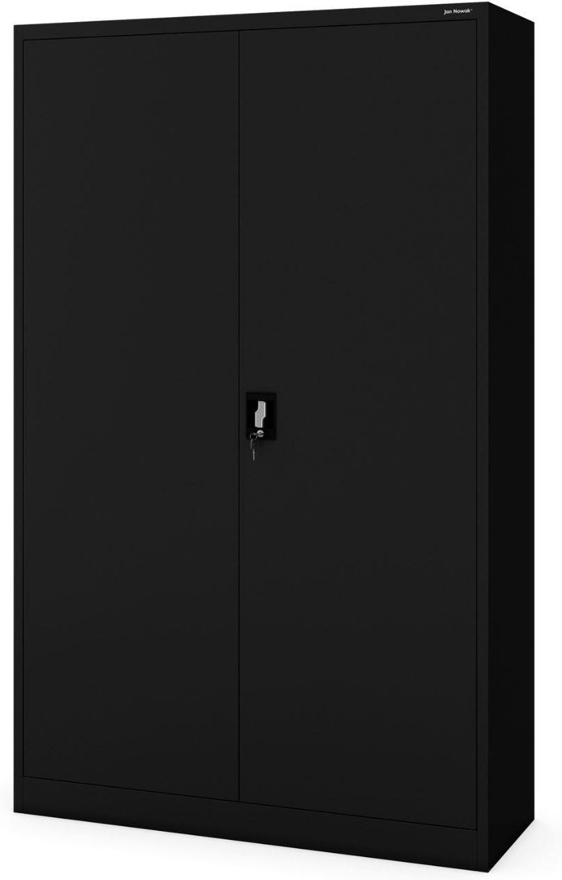 Biurowa szafa metalowa JAN II w czarnym kolorze marki Jan Nowak o szerokości 115 cm, jest meblem, w którym można przechowywać segregatory, leki czy narzędzia, a wszystkie przechowywane rzeczy będą bezpieczne.Szafa znajdzie zastosowanie w firmach, szkołach i urzędach, ale można wykorzystać ją również do wnętrz domowych, ze względu na minimalistyczny i ponadczasowy design.Szafa jest wyposażona w ryglowany zamek w trzech punktach i w dwuskrzydłowe drzwi. Szafa jest zamykana na klucz, a do zestawu dołączono dwa kluczyki.Wnętrze szafy, to 4 przestawne półki, każda o udźwigu do 50 kg, z regulacją co 25 mm. Mebel wykonany jest ze stali o grubości 0,6 mm malowanej proszkowo, odpornej na uszkodzenia mechaniczne.Wielkość wnętrza szafy jest imponująca, pomieści ona aż do 60 segregatorów.Szafa metalowa Jan została wyposażona w otwory na tylnej i bocznej ścianie, które umożliwiają przymocowanie jej do ściany, przez co zwiększy się bezpieczeństwo codziennego użytkowania.Szafa posiada Atest PZH i została opracowana z myślą o RODO 2018 i spełnia wszelkie wymogi związane z prawnymi regulacjami. Parametry techniczne:Wysokość: 185 cmSzerokość: 115 cmGłębokość: 40 cmProdukt przeznaczony do samodzielnego montażu - do zestawu dołączona prosta instrukcja, a poniżej film instruktażowy. W przypadku zgubienia kluczyków lub w przypadku zajścia potrzeby wymiany zamka istnieje możliwość zakupu, zarówno kluczyka surowego jak i okrągłego zamka.Model objęty jest 2-letnią gwarancją w systemie od drzwi do drzwi dla Państwa pełnego komfortu.Produkt dostarczymy do Państwa BEZPŁATNIE pod wskazany adres na terenie całego kraju.Co WAŻNE: zgodnie z prawem i naszym regulaminem mają Państwo pełne prawo do zwrotu nieużywanych towarów, jeśli nie spełnią one Państwa oczekiwań.
