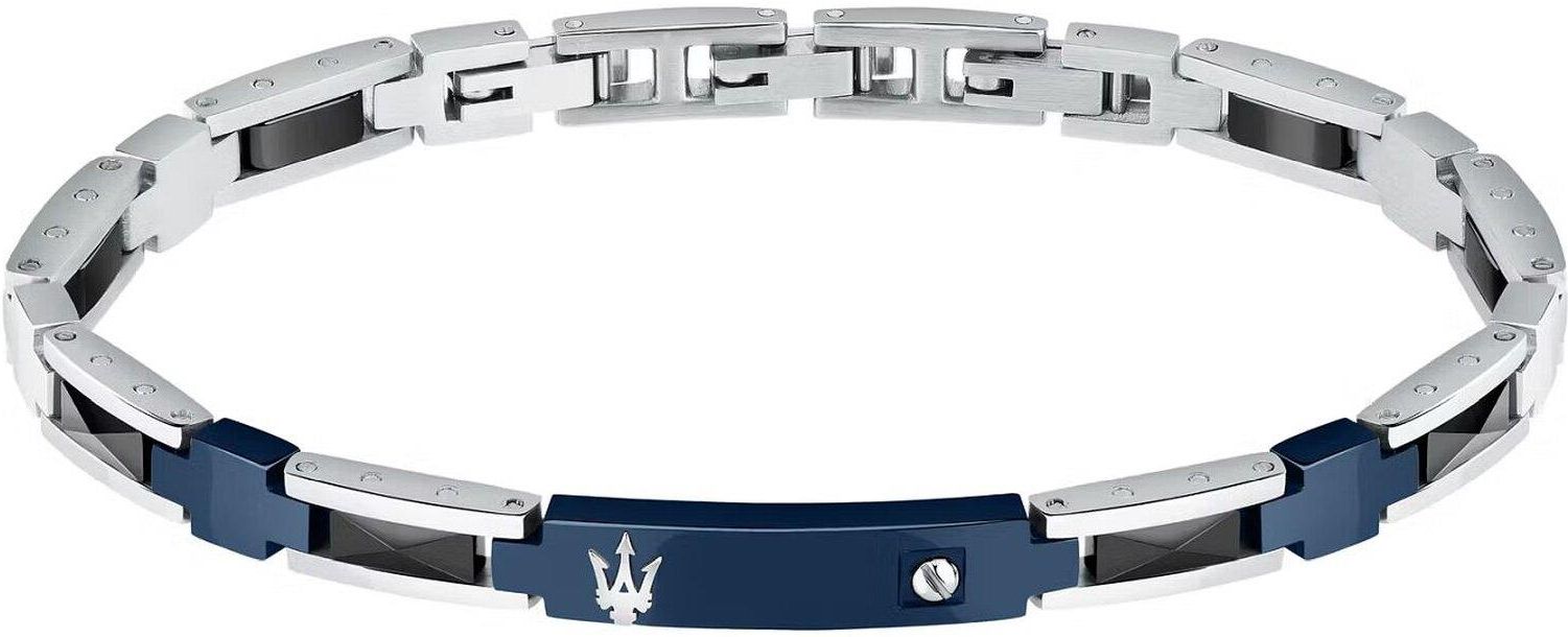 Szczegóły biżuteriiMateriały: Męska bransoletka wykonana ze stali, ceramiki, niebieskiego IPDługość: 21,5 cmPodsumowanieBransoletka Maserati (numer artykułu: JM423ATZ29) to męska bransoletka wykonana ze stali, ceramiki i niebieskiego IP. Mierząca 21,5 cm długości bransoleta posiada elementy wykonane z czarnej ceramiki i niebieskiego IP. Zapięcie na biżuteryjną klamrę sprawia, że jest ona praktyczna i bezpieczna i doskonale nadaje się na prezent na różne specjalne okazje.Komfort noszeniaBransoletka (numer artykułu: JM423ATZ29) jest wygodna w noszeniu dzięki optymalnej długości 21,5 cm. Zapięcie z biżuteryjną klamrą zapewnia bezpieczne dopasowanie i jest łatwe do zakładania i zdejmowania.Szczegóły kolorystyczneKolor niebieskiRésuméBransoletka Maserati (numer artykułu: JM423ATZ29) łączy styl i elegancję w ponadczasowym designie. Dzięki czarnym ceramicznym elementom i niebieskiemu IP jest to efektowny dodatek dla mężczyzn. Idealny na każdą okazję, podkreśla wszechstronność i śmiałość, które sprawiają, że Maserati jest ikoną stylu znaną na całym świecie. nowoczesna bransoleta wykonana z polerowanej stali nierdzewnej, częściowo pokryta niebieską powłoką jonową, szerokość 6,5 mm, długość 18,5 cm + 3 cm przedłużenia, połączona z czarną ceramiką, polerowane logo trójzębu Maserati, wygodne składane zapięcie z logo Biżuteria Maserati: idealne połączenie elegancji i sportowego charakteru: mieszanka włoskiego stylu i pasji do jazdy, która nie zna rywali.