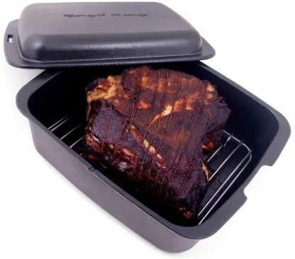 Żeliwna brytfanna Dutch Oven jest uniwersalnym naczyniem, które sprawdza się na grille ale również i w piekarniku, kuchence gazowej lub indukcyjnej, a także nad ogniskiem. Pojemność 7L sprawia, że zmieścisz w niej dużego kurczaka lub przygotujesz rodzinny gulasz, upieczesz chleb czy wieprzowinę. Brytfanna posiada grube ścianki, które równomiernie się nagrzewają i długo utrzymują ciepło, co pozwala na szybkie rozpoczęcie gotowania oraz na dłuższe utrzymanie temperatury gotowych już potraw. Brytfanna została wyposażona w wyjmowany ruszt ze stali szlachetnej, który unosi potrawę sprawiając, że ta nie leży sosie lub tłuszczu, tylko piecze się równomiernie bez ryzyka przypalenia z zachowaniem struktury i soczystości. Natomiast skapujące na dno soki i tłuszcze są odparowywane, co nadaje dodatkowego aromatu. Dopasowana pokrywa brytfanny korzystnie wpływa na utrzymanie wilgotności. Dodatkowo można ją wykorzystać jako żeliwną patelnię, która jest kompatybilna z uchwytem wielofunkcyjnym (60745), co ułatwi jej bezpieczne przenoszenie. W konstrukcji brytfanny znajdziemy specjalny otwór przez który możemy włożyć sondę do termometru umożliwiającą precyzyjne monitorowanie temperatury wewnątrz potrawy. Grube ścianki brytfanny mogą zakłócić sygnał termometrów bezprzewodowych, dlatego zalecane jest korzystanie z termometrów przewodowych. Po gotowaniu łatwo wyczyścisz brytfannę. Możesz ją szorować, bez obaw o powłokę. Dla zachowania idealnej kondycji żeliwa zaleca się okazjonalną konserwację cienką warstwą oleju. --- Importer: Agrimpex Grilluj i Gotuj Sp. K. Piotrów, ul. Zwierzyniecka 2A, 37-500 Jarosław, Nr telefonu: +48 16 623 61 72, Kontakt mailowy: pytania@broilking.pl Agrimpex Grilluj i Gotuj jest wyłącznym Importerem produktów Broil King, których producentem jest Onward Manufacturing Company Limited.