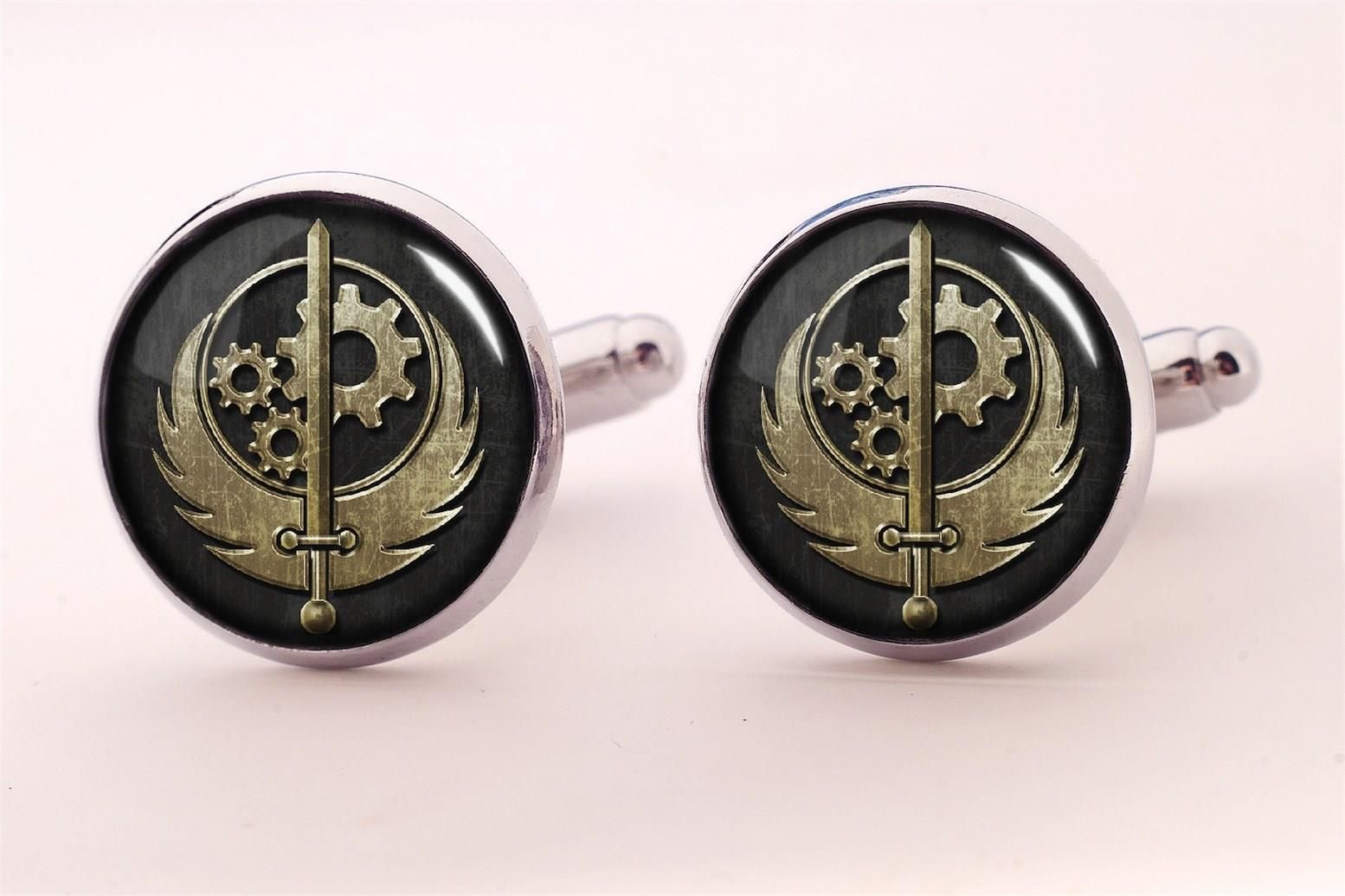 • brotherhood of steal, fallout, dla gracza, prezent ślubny, ślubne, spinki do mankietów, prezent, męskie, dla faceta, mężczyzna, egginegg, biżuteria z grafiką