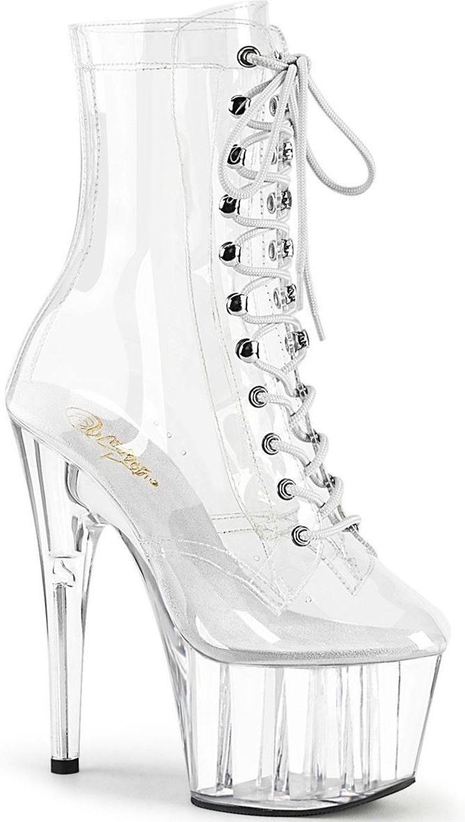 Botki ADORE-1020C przezroczyste zostały zaprojektowane z myślą o paniach, które nie boją się wyzwań. Pragną wyglądać seksownie, zmysłowo, a jednocześnie nie chcą rezygnować ze swojej wygody! Ten model butów został wykonany z wysokiej klasy materiałów syntetycznych. Dzięki temu buty są wytrzymałe a przy tym niezwykle wygodne. Warto zwrócić uwagę, że ten model obuwia mogą nosić także osoby, które zrezygnowały z używania wyrobów wykonanych ze skór naturalnych. System sznurowania oraz wysoka cholewka zapewniają stabilność, a także komfort w czasie wykonywania aktywności różnego rodzaju, na przykład tańca. 15,5 centymetrowe obcasy i 7 centymetrowe platformy optycznie wysmuklają kobiecą sylwetkę, nadają jej lekkości. Transparentne botki ADORE-1020C z całą pewnością przypadną do gustu paniom, które preferują minimalistyczne, nowoczesne wzornictwo, a jednocześnie chcą podkreślić swój sex-appeal. Na szczególną uwagę z całą pewnością zasługuje niebanalna kolorystyka. Kontrastowe kolory sprawiają, że właścicielka butów ADORE-1020 na pewno nie nie zginie w tłumie.Botki ADORE-1020C dostępne są w rozmiarach od 35 do 44.