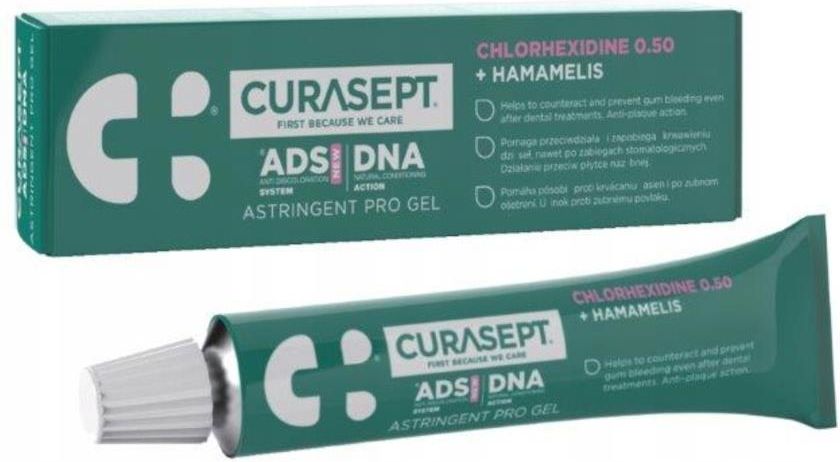 CURASEPT ADS DNA 350 ASTRINGENT 0,50% CHX 30ml żel z chlorheksydyną CURASEPT ADS DNA 350 ASTRINGENT - żel z chlorheksydyną o działaniu ściągającym, przeciwzapalnym i regenerującym Żel Curasept ADS DNA 350 ASTRINGENT z chlorheksydyną i oczarem wirginijskim pomaga przy zapaleniu i silnym krwawieniu …
