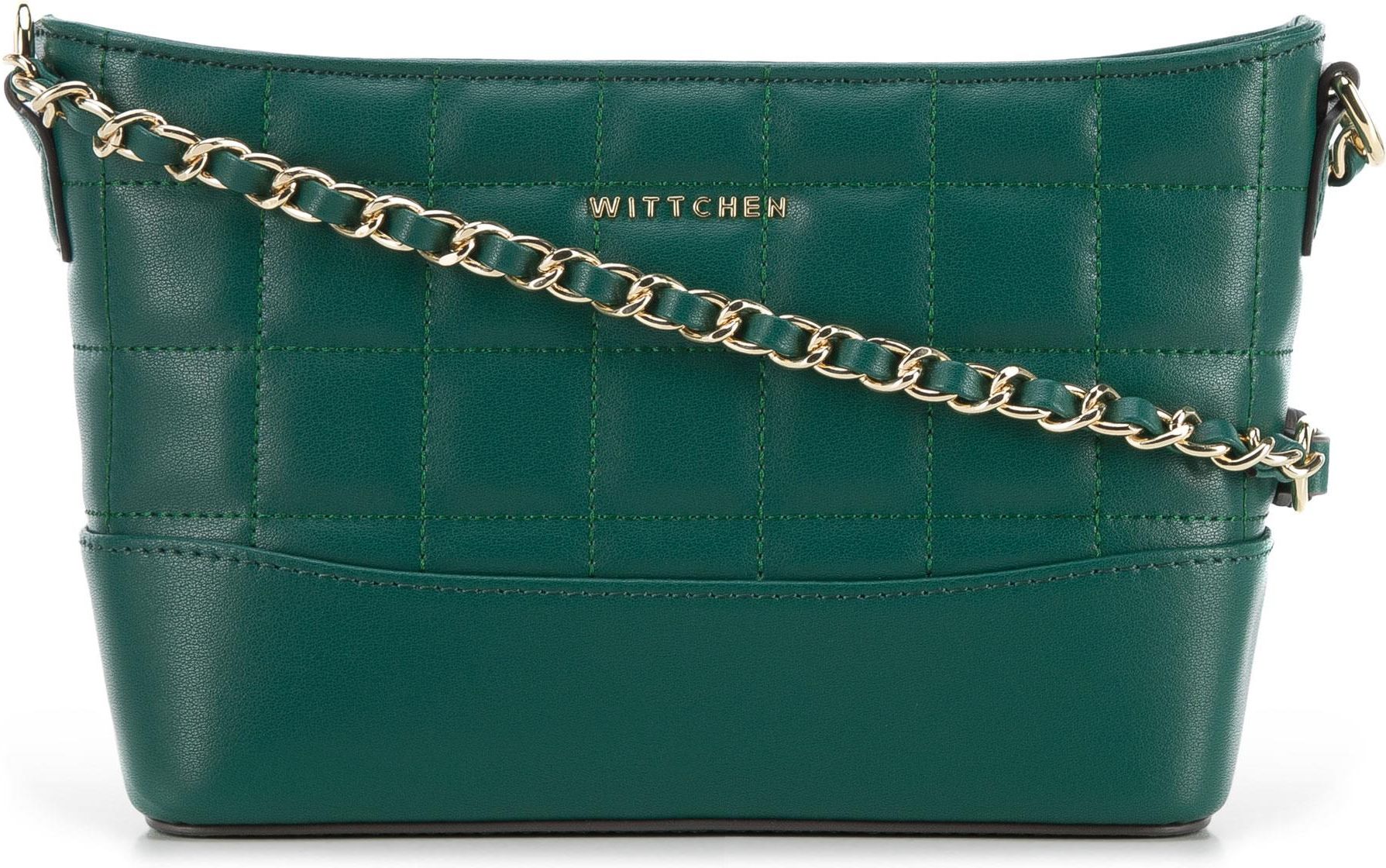 Damska torebka skórzana. Ta elegancka torebka oryginalnie podkreśli każdy Twój strój. Wykonana została z wysokiej jakości skóry naturalnej: pikowanej u góry i gładkiej na dole. Zdobi ją nowe logo WITTCHEN złożone z samych liter i błyszczący łańcuszek. Torebka ma sztywny fason przypominający kuferek, więc ładnie zachowuje kształt niezależnie od wypełnienia. Wewnątrz zmieścisz portfel, telefon, krem do rąk, mały notesik i kilka drobiazgów. Noś ją na przykład do ulubionych sukienek na eleganckie przyjęcia lub połącz z dżinsami i koszulą, i dodaj im elegancji. Damska listonoszka z pikowanej skóry na łańcuszku to wyjątkowy dodatek, który przyda Ci się na wiele okazji.Nasza rada: pasek z łańcuszkiem jest regulowany, więc możesz dopasować torebkę do siebie i nosić jak lubisz.Wewnątrz: dwie kieszenie, w tym jedna na suwak; ciemna podszewka haftowana w logo WITTCHEN. Dodatkowo: 100% skóra naturalna; regulowany pasek z łańcuszkiem; pikowana; sztywny kształt; usztywnione dno; zapinana na suwak.