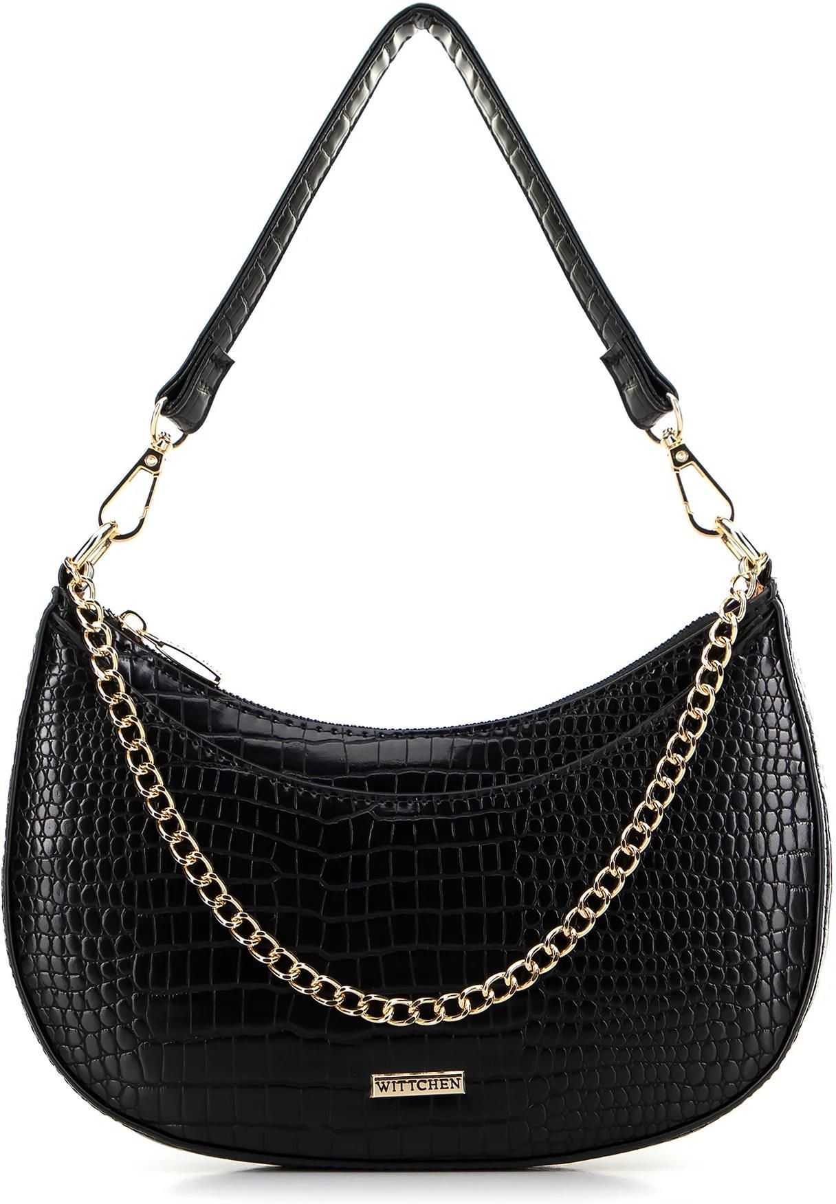 Opinie Damska torebka bagietka z łańcuszkiem croco czarno - złota Józefów