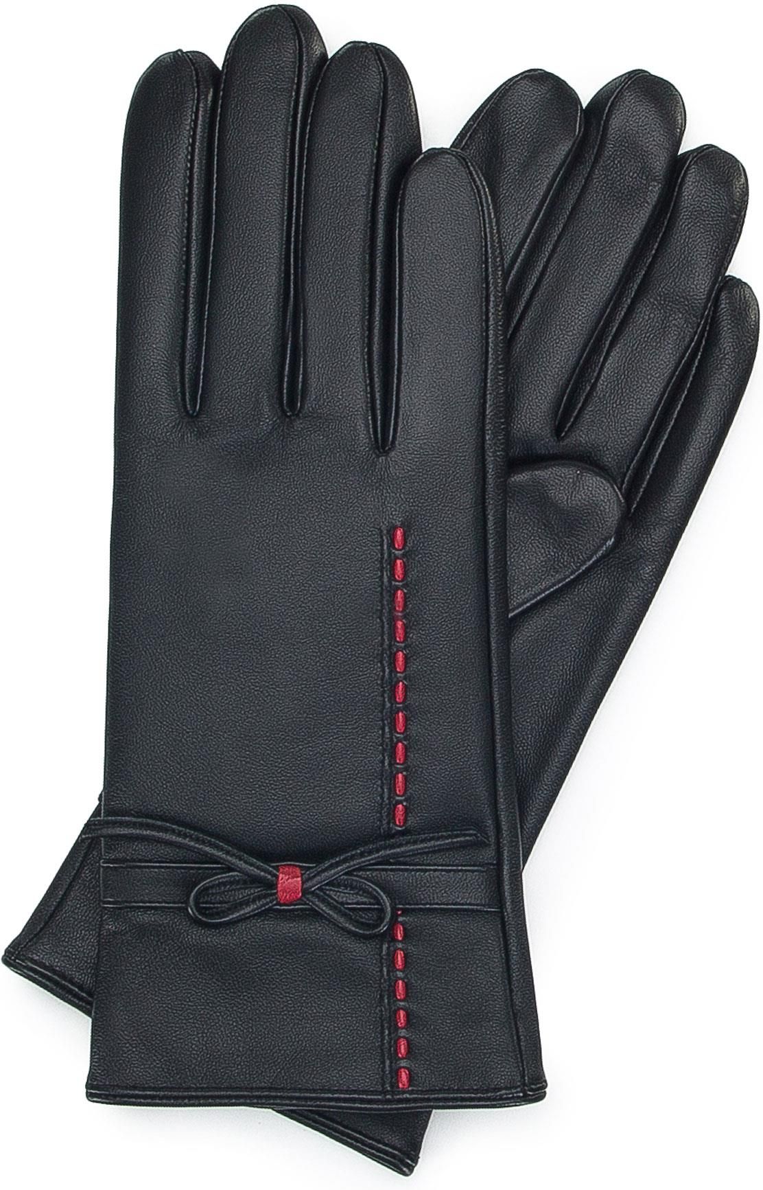 Opinie Damskie rękawiczki skórzane z kokardką i stębnowaniem Józefów