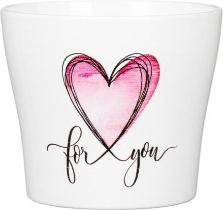 Osłonka na doniczkę Scheurich 808 With Love 13 Biała osłonka na doniczkę zdobiona sercem i napisem "for you" - idealna na prezent. Wykonana z ceramiki wysokiej jakości. W 100% wodoodporna i wodoszczelna. Wyprodukowana w Niemczech przez firmę Scheurich. Wymiary osłonek 808 (cm) Rozmiar średnica …