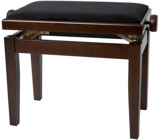 Ława do pianina / fortepianu z regulacją wysokościKolor: matowy orzech z czarnym siedziskiemLite drewnoNóżki są bardzo mocno przytwierdzone do ramy za pomocą wkrętu śrubowego M 8Wytrzymałość na złamanie: ponad 2 tonySiedzisko weluroweSiedzisko 52x30 cmŁatwa regulacja wysokości za pośrednictwem precyzyjnego mechanizmu nożycowegoWysokość 45-58 cm...