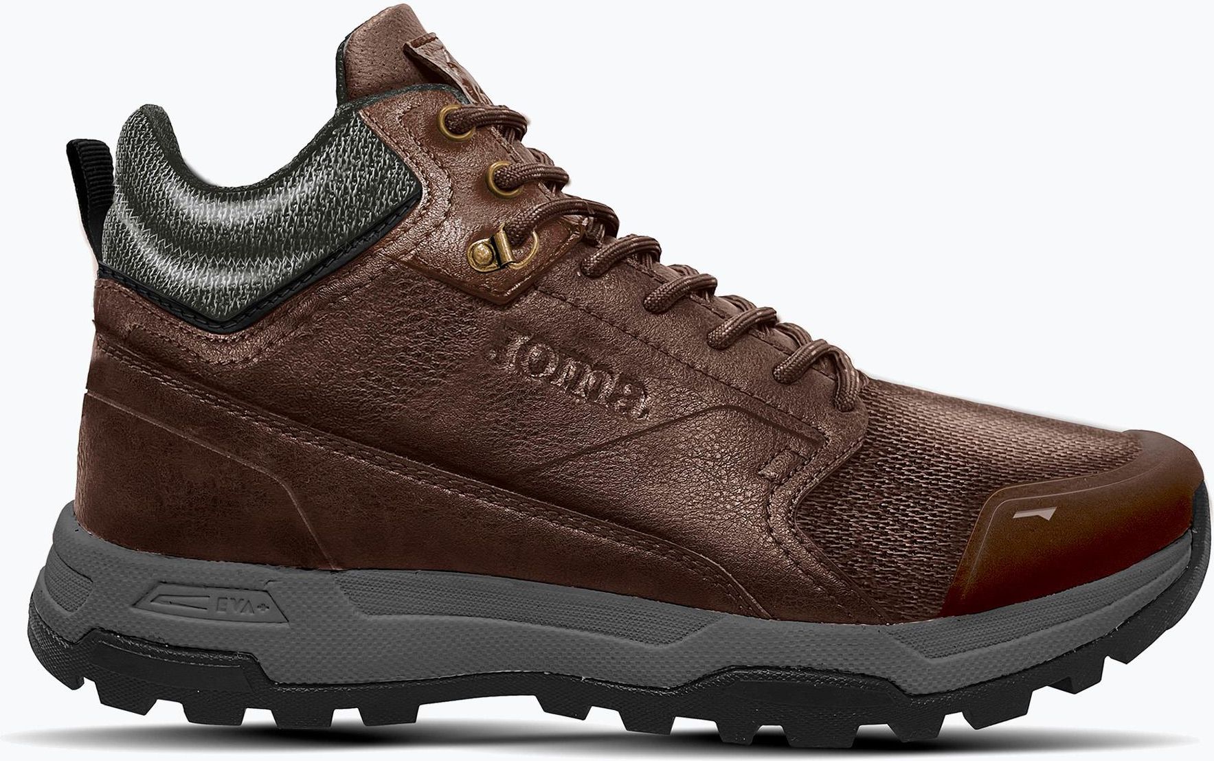 Buty turystyczne męskie Joma Tk.Ajofrin 2324 brown to solidny wybór dla osób poszukujących funkcjonalnego obuwia do wędrówek. Chociaż model ten nie posiada ocieplenia, może być odpowiedni na cieplejsze dni lub do stosowania w umiarkowanych warunkach pogodowych. Kluczowym elementem tego modelu są wzmocnienia przy palcach, które zapewniają dodatkową ochronę i trwałość w trudniejszych terenach. Właściwości techniczne Podstawowym materiałem, z którego wykonana jest podeszwa zewnętrzna, jest guma. Materiał ten charakteryzuje się dobrą przyczepnością do różnorodnych nawierzchni, co jest istotnym aspektem podczas długich wędrówek. Wysokie cholewki butów Joma Tk.Ajofrin 2324 brown zapewniają lepsze wsparcie dla kostki, co jest szczególnie ważne na nierównych ścieżkach i górzystych trasach. System zapięcia Buty Joma Tk.Ajofrin 2324 brown wyposażone są w system sznurowania, który pozwala na precyzyjne dopasowanie obuwia do stopy użytkownika. Taki rodzaj zapięcia daje możliwość regulacji nacisku na stopę, co jest korzystne podczas długotrwałego użytkowania, ponieważ pozwala na zmniejszenie ryzyka otarć i dyskomfortu. Kompatybilność i wodoodporność Warto zwrócić uwagę, że buty te nie są kompatybilne z rakami, co oznacza, że nie są przeznaczone do ekstremalnych warunków zimowych ani do wspinaczki lodowej. Marka Joma Joma to renomowana marka, znana z produkcji funkcjonalnego i trwałego sprzętu sportowego. Buty turystyczne męskie Joma Tk.Ajofrin 2324 brown doskonale wpisują się w filozofię marki, łącząc w sobie solidne wykonanie i praktyczność. Dzięki temu są odpowiednim wyborem dla osób ceniących sobie wytrzymałość i komfort podczas pieszych wędrówek.