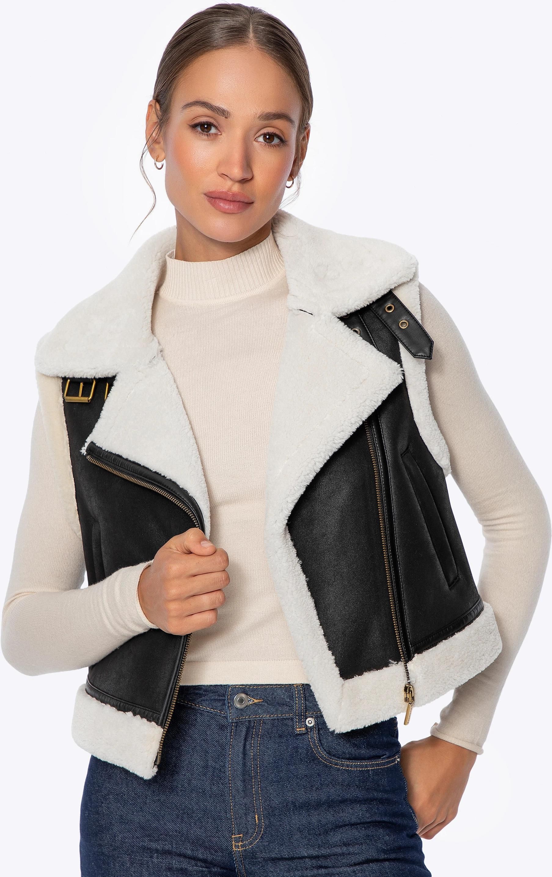 Kamizelka damska ze sztucznym kożuchem czarna Józefów
