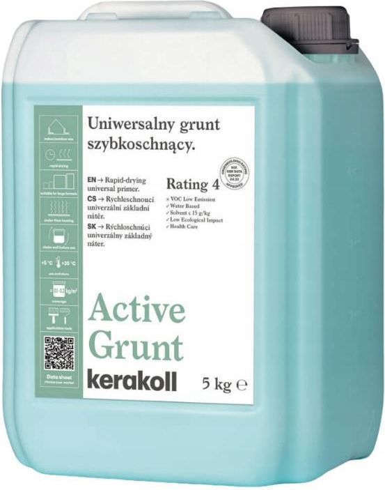 NOWA SZATA KERAKOLL GRUNT PRIMER A ECO ZMIANA NA KERAKOLL ACTIVE BLOCKER Pojemność: 5L Skoncentrowany grunt odcinający. Przeznaczony do podłoży chłonnych, na bazie cementu, wapna, gipsu i anhydrytu. Grunt o wysokiej zawartości żywicy. Użyty bez rozcieńczania zapobiega korozji siarczanowej, która zachodzi na powierzchni styku materiałów cementowych z gipsem. Superwydajny dzięki możliwości rozcieńczania w stosunku 1:3 wodą Chroni powierzchnię styku materiałów na bazie gipsu i cementu przed korozją Bezbarwny, idealny pod malowanie Wiąże pył z powierzchni podłoża Ujednolica chłonność podłoża Odpowiedni do podłoży ogrzewanych Zastosowanie Przeznaczenie użytkowe Active Blocker przeznaczony jest do chłonnych podłoży cementowych, wapiennych, gipsowych i anhydrytowych. Do stosowania przed aplikacją klejów cementowych, jastrychów, wylewek samopoziomujących i zapraw wyrównawczych. Do ścian i podłóg. Może być używany do wewnątrz i na zewnątrz. Active Blocker zmniejsza chłonność podłoży porowatych gwarantując lepsze wiązanie kolejnych materiałów. Produkty zgodne: - kleje mineralne do ceramiki i kamieni naturalnych - wylewki samopoziomujące i zaprawy wyrównawcze na bazie cementu i gipsu - szpachle i tynki na bazie cementu, wapna i gipsu - mineralne zaprawy hydroizolacyjne Podłoża: - stare i nowe jastrychy, wylewki samopoziomujące, na bazie cementu, gipsu i anhydrytu - porowaty beton - tynki cementowe, wapienne i gipsowe - płyty kartonowo-gipsowe i bloki gipsowe. Nie stosować: - na podłoża niechłonne, takie jak płytki, gładki beton, metal, PVC, OSB, lastryko, farby olejne, powierzchnie żywiczne, itp. - przed aplikacją klejów dyspersyjnych - na podłożach narażonych na kapilarne podciąganie wilgoci - jako hydroizolacja lub jako powłoka hydrofobowa na elewacji Technologia użycia Przygotowanie podłoży Generalnie podłoża muszą być mocne i zwarte, wolne od pyłu, oleju i tłuszczu. Części luźne i słabo związane, jak resztki cementu, wapna, lakierów, farb i klejów muszą być dokładnie usunięte. Podłoże musi być zabezpieczone przed kapilarnym podciąganiem wilgoci. Wylewki samopoziomujące na bazie cementu lub anhydrytu nie mogą mieć na powierzchni mleczka lub pyłu. Należy przeszlifować je gruboziarnistym materiałem ściernym dla usunięcia mleczka, a następnie oczyścić z pyłu. Wilgotność, mierzona wilgotnościomierzem węglikowym (CM), tynków gipsowych powinna wynosić ≤ 1%, jastrychów anhydrytowych ≤ 0,5% lub ≤ 0,3% przy ogrzewaniu podłogowym. Przy stosowaniu jako grunt odcinający, neutralizujący ekspansywną reakcję chemiczną podłoży na bazie gipsu i anhydrytu w kontakcie z materiałami cementowymi, aplikować Active Blocker rozcieńczony w stosunku 1:2 czystą wodą dla polepszenia penetracji gruntu w podłoże. Po całkowitym wyschnięciu nanieść drugą powłokę Active Blocker bez rozcieńczania. W innych przypadkach, zależnie od podłoża, stosować Active Blocker nierozcieńczony lub rozcieńczony w stosunku nawet do 1:3 dla zmniejszenia chłonności i związania pyłu. Każdorazowo wstrząsnąć pojemnikiem przed użyciem. Przygotować naczynie z potrzebną do rozcieńczenia ilością wody i dodać Active Blocker we wskazanej proporcji. Krótko wymieszać bezpośrednio przed użyciem. Nanoszenie Nalać odpowiednią ilość Active Blocker do pojemnika lub kuwety malarskiej. Zanurzyć wałek malarski lub pędzel i nałożyć równomierną warstwę na całej powierzchni podłoża. Sukcesywnie powtarzać operację na tej samej powierzchni, rozprowadzając ruchami poprzecznymi w stosunku poprzedniego nanoszenia. Zależnie od porowatości podłoża i temperatury oraz wilgotności otoczenia Active Blocker wysycha zwykle w ciągu 1 - 2 godzin. W przypadku odcinania anhydrytu/gipsu od materiałów cementowych odczekać co najmniej 4 godziny przed aplikacją kolejnych warstw. Stosować w temperaturze 5 – 30 °C. Czyszczenie Mycie narzędzi z resztek Active Blocker wykonywać wodą przed utwardzeniem produktu.