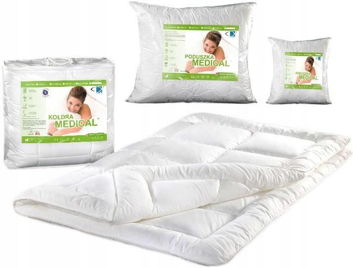 Kołdra 140x200 + 2 Poduszki Medical AMW – Komfort i Zdrowy Sen Zapewnij sobie i swojej rodzinie komfortowy i zdrowy sen z zestawem Medical AMW, który zawiera kołdrę 140x200 cm oraz dwie poduszki: 70x80 cm i 40x40 cm. To idealne rozwiązanie dla osób ceniących wysoką jakość, ergonomię oraz właściwości antyalergiczne. Komfortowy Sen Dzięki Optymalnym Wymiarom Kołdra o wymiarze 140x200 cm to doskonały rozmiar zarówno dla pojedynczych użytkowników, jak i par, którzy preferują lekkie przykrycie. Dwie poduszki w zestawie (standardowa 70x80 cm i mniejsza 40x40 cm) umożliwiają idealne dopasowanie do indywidualnych potrzeb – od podparcia głowy po wygodne ułożenie ciała podczas odpoczynku. Zalety Kołdry i Poduszek Medical AMW Antyalergiczne właściwości – idealne dla alergików i osób ze skórą wrażliwą. Zestaw wykonany z materiałów zapobiegających rozwojowi roztoczy i bakterii. Oddychające tkaniny – zapewniają odpowiednią cyrkulację powietrza, co przekłada się na lepszą termoregulację podczas snu. Lekkość i miękkość – kołdra i poduszki są lekkie, ale jednocześnie dobrze izolują ciepło, gwarantując komfort przez cały rok. Trwałość i łatwość pielęgnacji – materiały są odporne na wielokrotne pranie i zachowują swoje właściwości nawet po długim użytkowaniu. Ergonomiczne wsparcie – poduszki o różnych rozmiarach pozwalają na prawidłowe ułożenie szyi i głowy, minimalizując napięcia mięśniowe. Idealny Wybór dla Zdrowia i Dobrego Samopoczucia Kołdra i poduszki Medical AMW zostały zaprojektowane z myślą o osobach, które szukają nie tylko wygody, ale i wsparcia zdrowotnego podczas snu. Produkt wspiera regenerację organizmu, sprzyja lepszemu wypoczynkowi i poprawia jakość snu, co wpływa na lepsze samopoczucie w ciągu dnia. Specyfikacja Produktu Kołdra: 140x200 cm Poduszki: 1x 70x80 cm, 1x 40x40 cm Materiał: antyalergiczny, oddychający Pranie: możliwe w pralce Producent: AMW Zapewnij sobie zdrowy i spokojny sen z kołdrą i poduszkami Medical AMW – wybierz komfort, który docenisz każdego dnia! Komplet Medical®, W skład kompletu wchodzą: - kołdra całoroczna antyalergiczna w rozmiarze 140x200 cm - 1 szt. (waga: 1100g) - poduszka antyalergiczna w rozmiarze 70x80 cm - 1 szt. (waga: 1000g) - poduszka antyalergiczna w rozmiarze 40x40 cm - 1 szt. (waga: 250g). Tolerancja rozmiaru: +/- 3%, Komplet składa się z 3 części. Skład tkaniny: 52% poliester, 48% bawełna, Kolor: biały. Wypełnienie kołdry: 100% poliester silikonowany Hollow, Wypełnienie poduszki: 100% poliester Amball® (kulki poliestrowe). Tkanina posiada certyfikat Oko Tex Standard 100