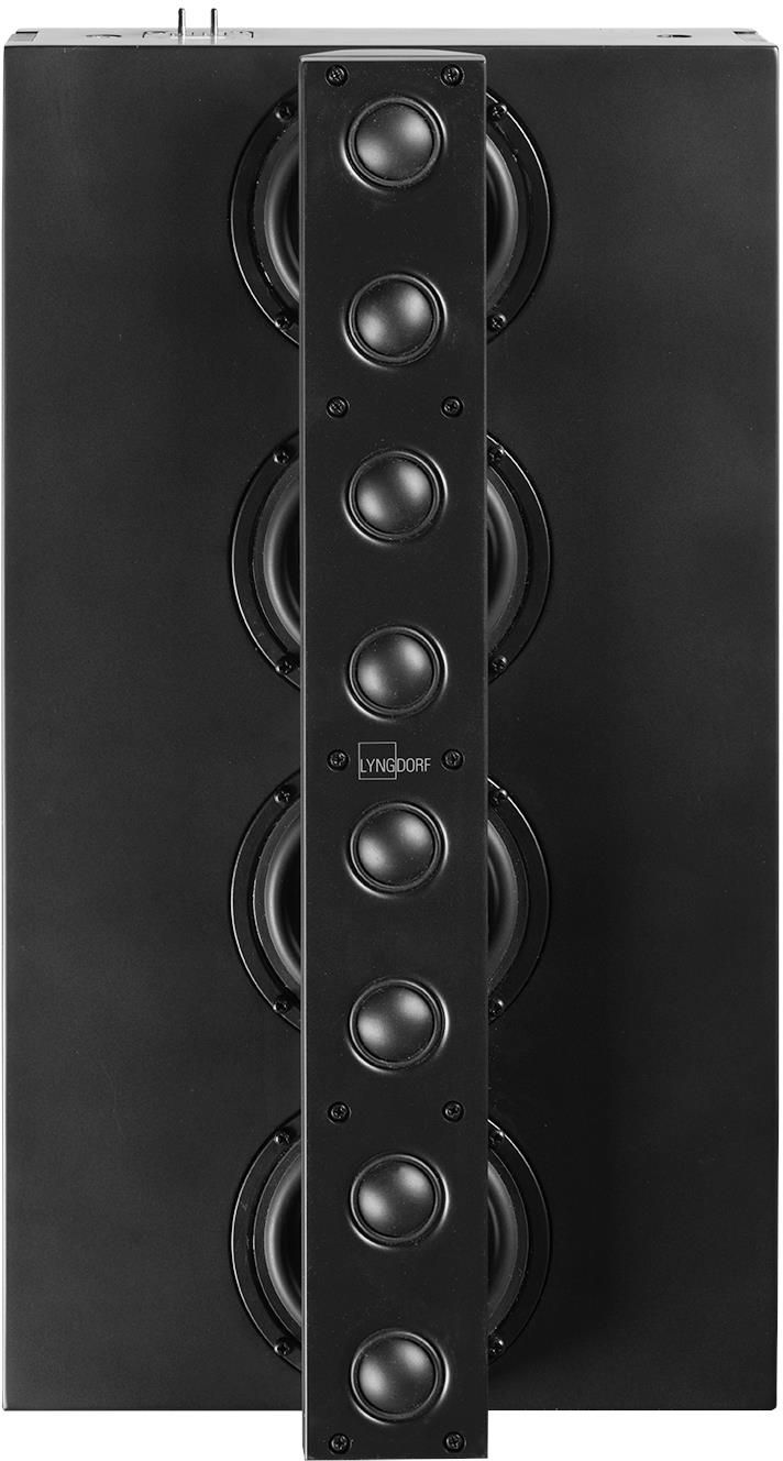 LYNGDORF LS-1000 CENTERDzięki naszemu doświadczeniu w tworzeniu głośników dla referencyjnych kin domowych Steinway Lyngdorf, zwłaszcza wyjątkowych modeli LS firmy Steinway & Sons, połączonym z doświadczeniem zdobytym podczas tworzenia głośników Lyngdorf MH i FR, nasi inżynierowie stworzyli głośniki LS-1000 dla systemów Lyngdorf Audio. Cztery moduły LS-1000 tworzą głośnik źródła liniowego, a każdy z modułów składa się z czterech 115 mm przetworników średniotonowych z aluminiowymi stożkami, 25 mm cewek drgających i potężnych magnesów wentylowanych i uzupełniony jest przez osiem 1” głośników wysokotonowych z miękką kopułką. Cztery połączone moduły LS-1000 dają system głośnikowy z 16 przetwornikami średniotonowymi i 32 wysokotonowymi. W zależności od szerokości pomieszczenia, układu siedzeń, położenia głośników i rozmiaru ekranu, zaprojektowaliśmy trzy różne modele LS-1000, aby zapewnić najlepszą dyspersję dźwięku w pomieszczeniu. Lyngdorf LS-1000 Left posiada dyspersję dźwięku skierowaną lekko do wewnątrz, gdy jest umiejscowiony na lewej stronie, z dala od ścian i w kierunku obszaru odsłuchowego. Głośniki wysokotonowe Lyngdorf LS-1000 Center są zamontowane centrali, co prowadzi do większej dyspersji równomiernie w lewo i prawo. Dlatego jest to idealny wybór jako centralny głośnik za ekranami, które nie wpływają na akustykę lub jako lewe i prawe głośniki w celu osiągnięcia możliwie najszerszego obszaru odsłuchowego w szerokim pomieszczeniu. Lyngdorf LS-1000 Right posiada dyspersję dźwięku skierowaną lekko do wewnątrz, gdy jest umiejscowiony na prawej stronie, z dala od ścian i w kierunku obszaru odsłuchowego. UNIKATOWE FUNKCJEOgraniczone odbicia od podłogi i sufitu oraz jednolita energia dźwięku w całym pomieszczeniuLS-1000 składa się z kilku identycznych przetworników w pionowym układzie źródła liniowego. W porównaniu z konwencjonalnymi głośnikami źródła punktowego, źródło liniowe minimalizuje efekt odbić od podłogi i sufitu poprzez ograniczenie pionowej dyspersji dźwięku. Słuchacze usłyszą więcej głośnika, a mniej pomieszczenia. Głośnik LS-1000 zachowuje energię dźwięku w całym pomieszczeniu, a subiektywny poziom dźwięku jest bardzo podobny w każdym miejscu. Obszar najlepszego odsłuchu znacząco otwiera się we wszystkich kierunkach. Dedykowane modele LS do umieszczenia po lewej, prawej stronie i na środkuTrzy różne modele LS-1000 zostały zaprojektowane z myślą o jak najlepszej dyspersji dźwięku w pomieszczeniu. Głośnik LS-1000 Left rozprasza dźwięk lekko do wewnątrz, gdy jest umiejscowiony po lewej stronie, z dala od ścian i w kierunku obszaru odsłuchowego. Głośnik LS-1000 Right rozprasza dźwięk lekko do wewnątrz, gdy jest umiejscowiony po prawej stronie. Lyngdorf LS-1000 Center posiada głośniki wysokotonowe zamontowane centralnie, co prowadzi do większej dyspersji, równomiernie w lewo i prawo. Sztywna i płytka modułowa konstrukcja, która jest łatwa w instalacjiLS-1000 to bardzo sztywna konstrukcja modułowa, która minimalizuje rezonans mechaniczny. Cała konstrukcja obudowy jest smukła i bardzo płytka, co sprawia, że montaż za neutralnymi akustycznie ekranami jest bardzo prosta. Piętrowe moduły można połączyć za pomocą zintegrowany złączy, aby nie stosować żadnych kabli głośnikowych pomiędzy modułami. Proste łączenie ze wzmacniaczamiDzięki mocy wyjściowej 300 W IEC, czułości 98 dB 2,83 V/1m oraz łącznej impedancji 4 omów przy korzystaniu z czterech modułów, głośnik LS-1000 można z łatwością połączyć ze wzmacniaczami. Wysoka czułość połączona z typową dla źródła liniowego energią dźwięku w całym pomieszczeniu pozwala głośnikom LS-1000 osiągać wysokie poziomy głośności bez żadnego wysiłku przy danej mocy wzmacniacza. Zakres częstotliwości od 20 000 Hz do 100 Hz pozwala różnym wooferom lub subwooferom bez trudu uzupełniać działanie głośników LS-1000, zwłaszcza w połączeniu z Lyngdorf BW-20. DANE TECHNICZNE Model: Lyngdorf LS-1000 Center Opis: 2-drożny, źródło liniowe, zamknięta obudowa Głośnik wysokotonowy: 8 sztuk, 1”, miękka kopułka Głośnik średniotonowy: 4 sztuki, 115 mm, cewka drgająca 25 mm, stożek aluminiowy, magnes wentylowany Obudowa: MDF Pasmo przenoszenia: 100 – 20,000 Hz (-3 dB) (dla czterech modułów LS-1000) Rozszerzenie częstotliwości do 50 Hz w zależności od korekcji Impedancja nominalna: 4 omy (dla czterech modułów LS-1000) (16 omów na moduł) Czułość: 98 dB (2.83 V/1 m) (dla czterech modułów LS-1000) Moc wyjściowa: 300 W (IEC) (dla czterech modułów LS-1000) Maksymalny poziom ciśnienia akustycznego (SPL): 120 dB (dla czterech modułów LS-1000) Punkt podziału: 1,8 kHz Przyłącza: Zaciski śrubowe Montaż: W ścianie Wymiary (szer. x wys. x głęb.): 280 x 500 x 132 mm + mocowanie Masa: 10,4 kg Wykończenie powierzchni: Matowa czerń