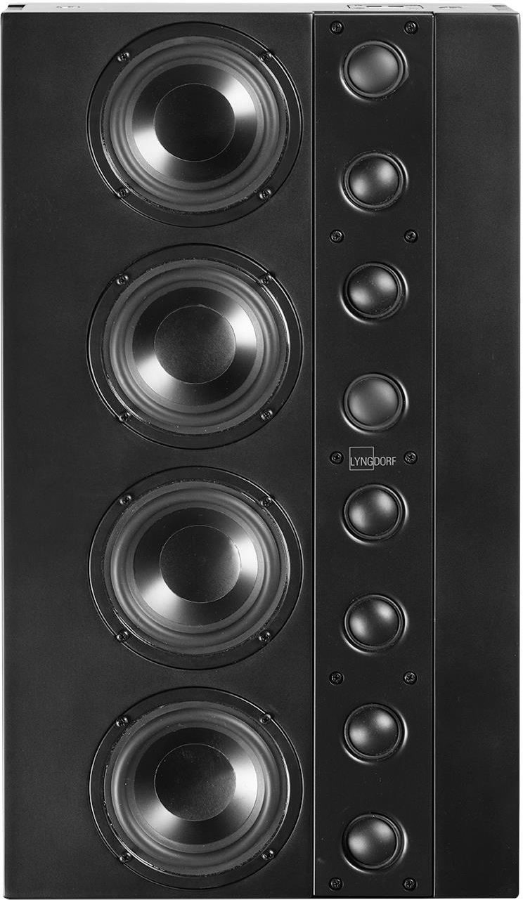 LYNGDORF LS-1000 LEFT Dzięki naszemu doświadczeniu w tworzeniu głośników dla referencyjnych kin domowych Steinway Lyngdorf, zwłaszcza wyjątkowych modeli LS firmy Steinway & Sons, połączonym z doświadczeniem zdobytym podczas tworzenia głośników Lyngdorf MH i FR, nasi inżynierowie stworzyli głośniki LS-1000 dla systemów Lyngdorf Audio. Cztery moduły LS-1000 tworzą głośnik źródła liniowego, a każdy z modułów składa się z czterech 115 mm przetworników średniotonowych z aluminiowymi stożkami, 25 mm cewek drgających i potężnych magnesów wentylowanych i uzupełniony jest przez osiem 1” głośników wysokotonowych z miękką kopułką. Cztery połączone moduły LS-1000 dają system głośnikowy z 16 przetwornikami średniotonowymi i 32 wysokotonowymi. W zależności od szerokości pomieszczenia, układu siedzeń, położenia głośników i rozmiaru ekranu, zaprojektowaliśmy trzy różne modele LS-1000, aby zapewnić najlepszą dyspersję dźwięku w pomieszczeniu. Lyngdorf LS-1000 Left posiada dyspersję dźwięku skierowaną lekko do wewnątrz, gdy jest umiejscowiony na lewej stronie, z dala od ścian i w kierunku obszaru odsłuchowego. Głośniki wysokotonowe Lyngdorf LS-1000 Center są zamontowane centrali, co prowadzi do większej dyspersji równomiernie w lewo i prawo. Dlatego jest to idealny wybór jako centralny głośnik za ekranami, które nie wpływają na akustykę lub jako lewe i prawe głośniki w celu osiągnięcia możliwie najszerszego obszaru odsłuchowego w szerokim pomieszczeniu. Lyngdorf LS-1000 Right posiada dyspersję dźwięku skierowaną lekko do wewnątrz, gdy jest umiejscowiony na prawej stronie, z dala od ścian i w kierunku obszaru odsłuchowego. UNIKATOWE FUNKCJEOgraniczone odbicia od podłogi i sufitu oraz jednolita energia dźwięku w całym pomieszczeniuLS-1000 składa się z kilku identycznych przetworników w pionowym układzie źródła liniowego. W porównaniu z konwencjonalnymi głośnikami źródła punktowego, źródło liniowe minimalizuje efekt odbić od podłogi i sufitu poprzez ograniczenie pionowej dyspersji dźwięku. Słuchacze usłyszą więcej głośnika, a mniej pomieszczenia. Głośnik LS-1000 zachowuje energię dźwięku w całym pomieszczeniu, a subiektywny poziom dźwięku jest bardzo podobny w każdym miejscu. Obszar najlepszego odsłuchu znacząco otwiera się we wszystkich kierunkach. Dedykowane modele LS do umieszczenia po lewej, prawej stronie i na środkuTrzy różne modele LS-1000 zostały zaprojektowane z myślą o jak najlepszej dyspersji dźwięku w pomieszczeniu. Głośnik LS-1000 Left rozprasza dźwięk lekko do wewnątrz, gdy jest umiejscowiony po lewej stronie, z dala od ścian i w kierunku obszaru odsłuchowego. Głośnik LS-1000 Right rozprasza dźwięk lekko do wewnątrz, gdy jest umiejscowiony po prawej stronie. Lyngdorf LS-1000 Center posiada głośniki wysokotonowe zamontowane centralnie, co prowadzi do większej dyspersji, równomiernie w lewo i prawo. Sztywna i płytka modułowa konstrukcja, która jest łatwa w instalacjiLS-1000 to bardzo sztywna konstrukcja modułowa, która minimalizuje rezonans mechaniczny. Cała konstrukcja obudowy jest smukła i bardzo płytka, co sprawia, że montaż za neutralnymi akustycznie ekranami jest bardzo prosta. Piętrowe moduły można połączyć za pomocą zintegrowany złączy, aby nie stosować żadnych kabli głośnikowych pomiędzy modułami. Proste łączenie ze wzmacniaczamiDzięki mocy wyjściowej 300 W IEC, czułości 98 dB 2,83 V/1m oraz łącznej impedancji 4 omów przy korzystaniu z czterech modułów, głośnik LS-1000 można z łatwością połączyć ze wzmacniaczami. Wysoka czułość połączona z typową dla źródła liniowego energią dźwięku w całym pomieszczeniu pozwala głośnikom LS-1000 osiągać wysokie poziomy głośności bez żadnego wysiłku przy danej mocy wzmacniacza. Zakres częstotliwości od 20 000 Hz do 100 Hz pozwala różnym wooferom lub subwooferom bez trudu uzupełniać działanie głośników LS-1000, zwłaszcza w połączeniu z Lyngdorf BW-20. DANE TECHNICZNE Model: Lyngdorf LS-1000 Left Opis: 2-drożny, źródło liniowe, zamknięta obudowa Głośnik wysokotonowy: 8 sztuk, 1”, miękka kopułka Głośnik średniotonowy: 4 sztuki, 115 mm, cewka drgająca 25 mm, stożek aluminiowy, magnes wentylowany Obudowa: MDF Pasmo przenoszenia: 100 – 20,000 Hz (-3 dB) (dla czterech modułów LS-1000) Rozszerzenie częstotliwości do 50 Hz w zależności od korekcji Impedancja nominalna: 4 omy (dla czterech modułów LS-1000) (16 omów na moduł) Czułość: 98 dB (2.83 V/1 m) (dla czterech modułów LS-1000) Moc wyjściowa: 300 W (IEC) (dla czterech modułów LS-1000) Maksymalny poziom ciśnienia akustycznego (SPL): 120 dB (dla czterech modułów LS-1000) Punkt podziału: 1,8 kHz Przyłącza: Zaciski śrubowe Montaż: W ścianie Wymiary (szer. x wys. x głęb.): 280 x 500 x 85 mm + mocowanie Masa: 9,9 kg Wykończenie powierzchni: Matowa czerń