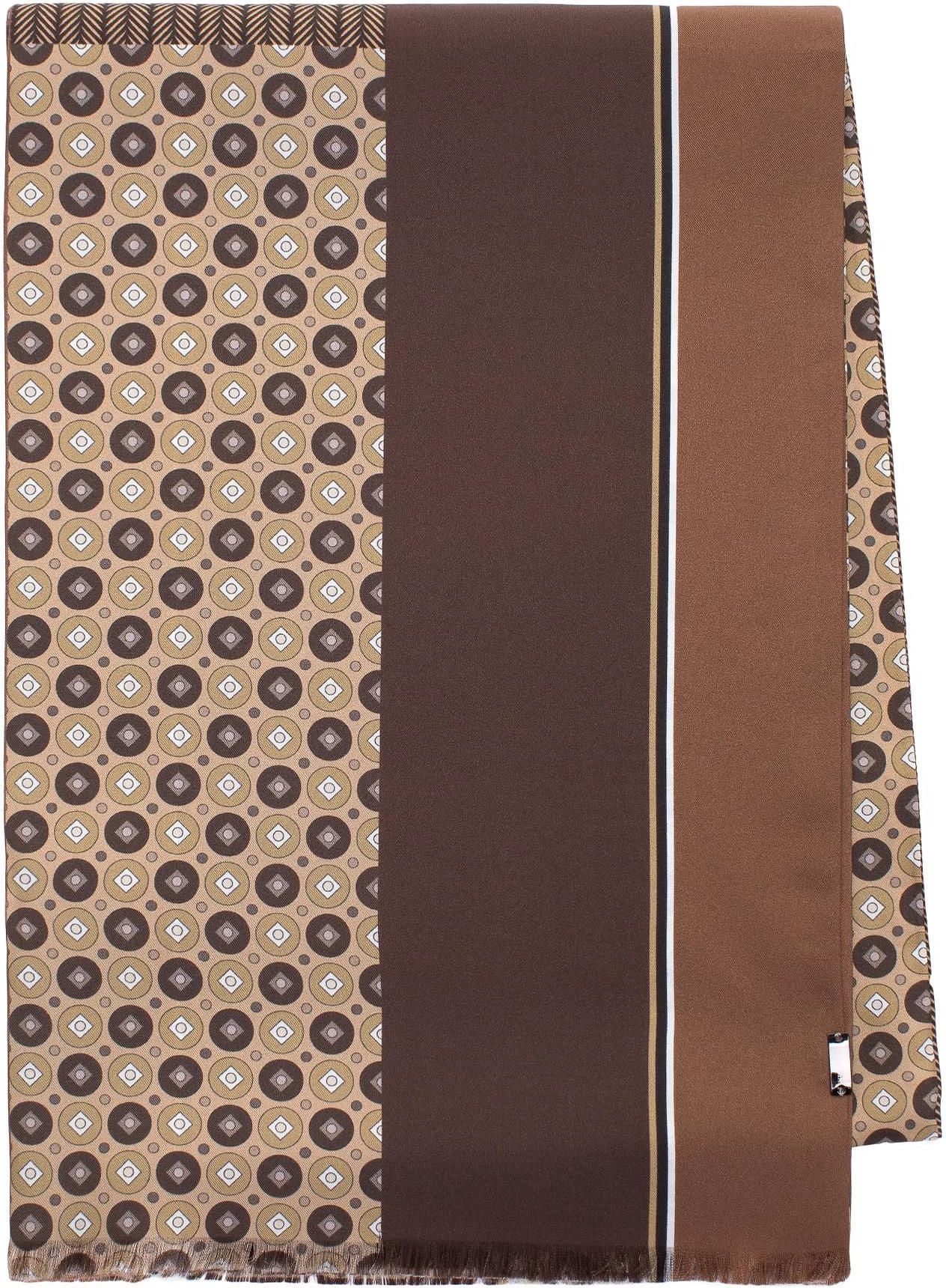 Jedwabny męski szal. Ten męski szal został wykonany ze szlachetnego jedwabiu o satynowym połysku. Zarówno z przodu, jak z tyłu widać wierzch tkaniny, gdyż ten model nie ma lewej strony. Wyjątkowe wzory w gustownej kolorystyce podkreślą każdy Twój strój. Dodatkowo dzięki odpowiedniej długości możesz zawiązać go na kilka sposobów. Męski szal z jedwabiu także świetny pomysł na prezent dla eleganckiego mężczyzny.Nasza rada: możesz złożyć go na pół i nosić na zakładkę lub owinąć nim luźno szyję dla swobodniejszego looku. 100% jedwab; wymiary: 26 cm x 162 cm.