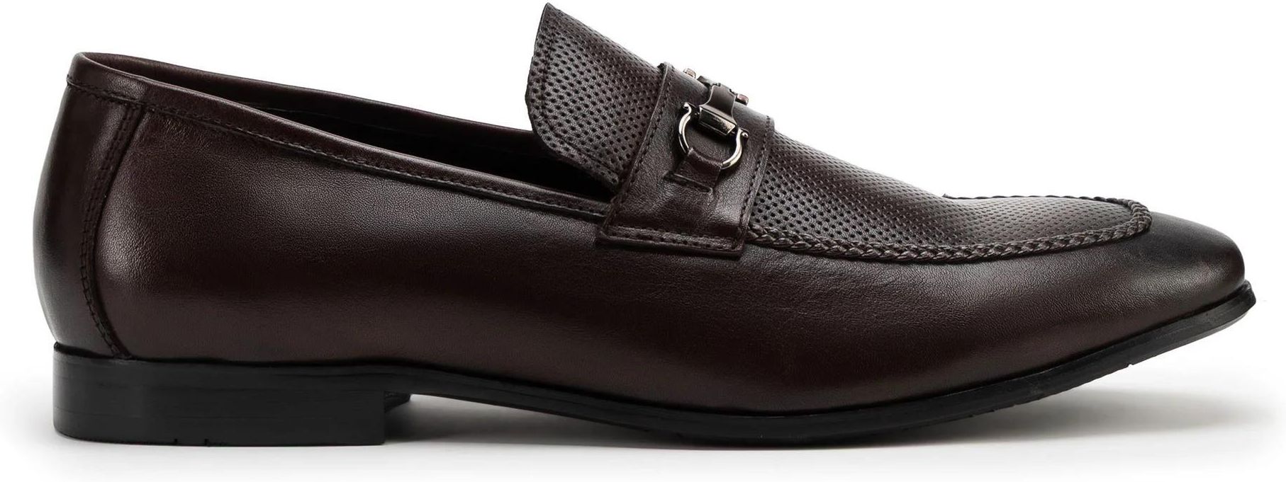 Męskie mokasyny ze skóry z klamrą na pasku ciemny brąz Józefów