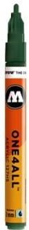 Końcówka o szerokości 2mm pozwala na precyzyjne wykonywanie swojej pracy. One4All nowa referencyjna klasa wśród markerów. Niesamowity zasięg( do malowania po skórze, plastiku, metalu etc.), jasne kolory (100% odporność na UV), zawór Flowmaster dla aktywnej kontroli przepływu farby i opatentowana technologia kapilarna. Przełomowe akrylowe, hybrydowe farby, które mogą być rozcieńczane z wodą lub acetonem. Wszystkie te cechy sprawiają, że seria one4all to gwiazda w obszarze sztuki i projektowania. Wymienne końcówki 2mm oraz 1mm. ZIELONY.