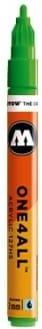 Końcówka o szerokości 2mm pozwala na precyzyjne wykonywanie swojej pracy. One4All nowa referencyjna klasa wśród markerów. Niesamowity zasięg( do malowania po skórze, plastiku, metalu etc.), jasne kolory (100% odporność na UV), zawór Flowmaster dla aktywnej kontroli przepływu farby i opatentowana technologia kapilarna. Przełomowe akrylowe, hybrydowe farby, które mogą być rozcieńczane z wodą lub acetonem. Wszystkie te cechy sprawiają, że seria one4all to gwiazda w obszarze sztuki i projektowania. Wymienne końcówki 2mm oraz 1mm. ZIELONY.