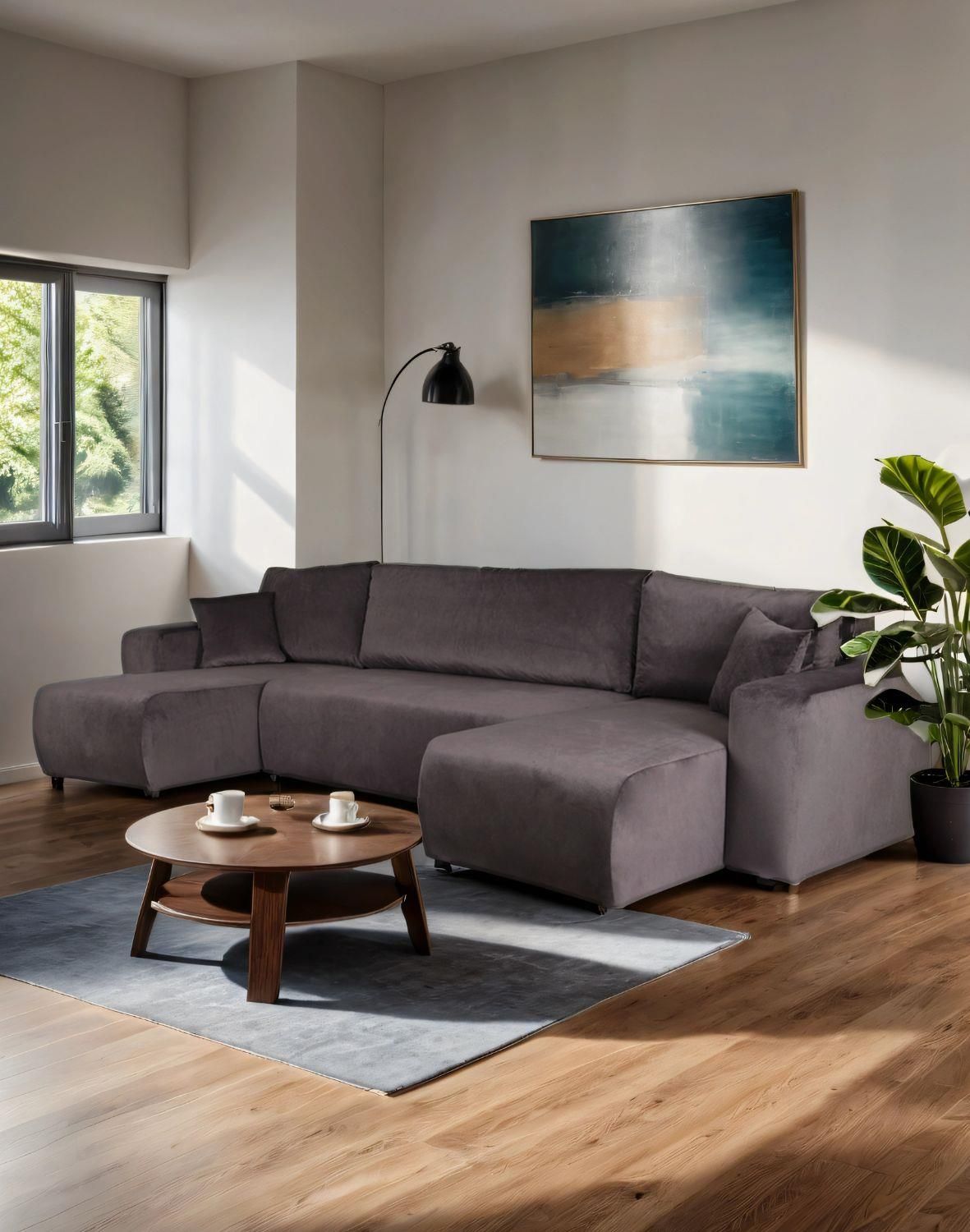 Narożnik z funkcją spania, rozkładany Orion w kształcie litery U, gładki Józefów