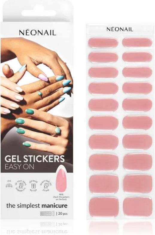 NEONAIL Easy On Gel Stickers, 20 szt., Modelowanie paznokci dla kobiet, Właściwości: intensywny i głęboki kolor długo się utrzymuje wygodnie się nanosi po wysuszeniu musi być użyta lampa LED