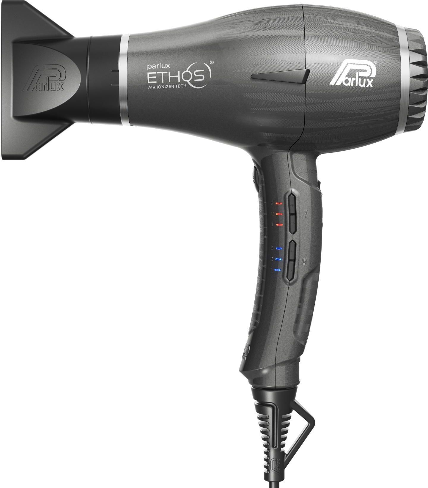 Opis produktu Parlux Ethos to profesjonalna suszarka do włosów wyposażona w nowoczesny, cyfrowy silnik. Produkt został zaprojektowany z myślą o maksymalnej wydajności oraz wygodzie użytkowania. Najważniejsze cechy Cyfrowy silnik o mocy 2300 W. 3 ustawienia temperatury, 3 prędkości nadmuchu oraz 3 tryby pracy. Profesjonalny, opatentowany kabel o długości 3,3 m zapewniający swobodę ruchów. Oddzielny przełącznik ON/OFF z blokadą oraz cyfrowy przełącznik sterowania. Przepływ powietrza do 88 m³ na godzinę. System Air Ionizer – technologia jonizacji, która redukuje elektryzowanie się włosów i nadaje im zdrowy połysk. Niska waga urządzenia (1250 g) sprzyja komfortowemu użytkowaniu. Wymiary produktu Długość: 22 cm Szerokość: 9 cm Wysokość: 20 cm Kolor i wykonanie Model oferowany jest w odcieniu Titan. Suszarka została wyprodukowana we Włoszech przez uznanego producenta sprzętu fryzjerskiego - firmę Parlux. Zastosowanie Sprzęt nadaje się zarówno do profesjonalnych salonów fryzjerskich, jak i do użytku domowego przez wymagających użytkowników. Dodatkowe informacje techniczne Kod producenta/model: 8021233144349 Waga opakowania: 1255 g Wymiary opakowania: 32 x 24 x 11 cm Produkt nie wymaga baterii, nie jest produktem wrażliwym na ciepło. Zasilanie sieciowe. Korzyści z użytkowania Wysoka efektywność suszenia włosów przy zachowaniu lekkości i wygody. Technologia jonizacji przeciwdziała puszeniu się włosów i podkreśla ich blask. Zawartość opakowania Profesjonalna suszarka do włosów Parlux Ethos w kolorze Titan.